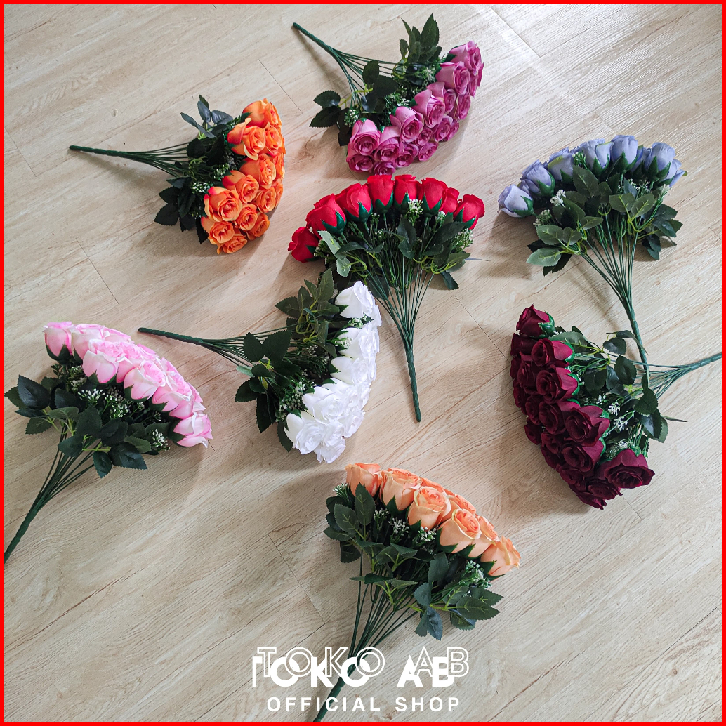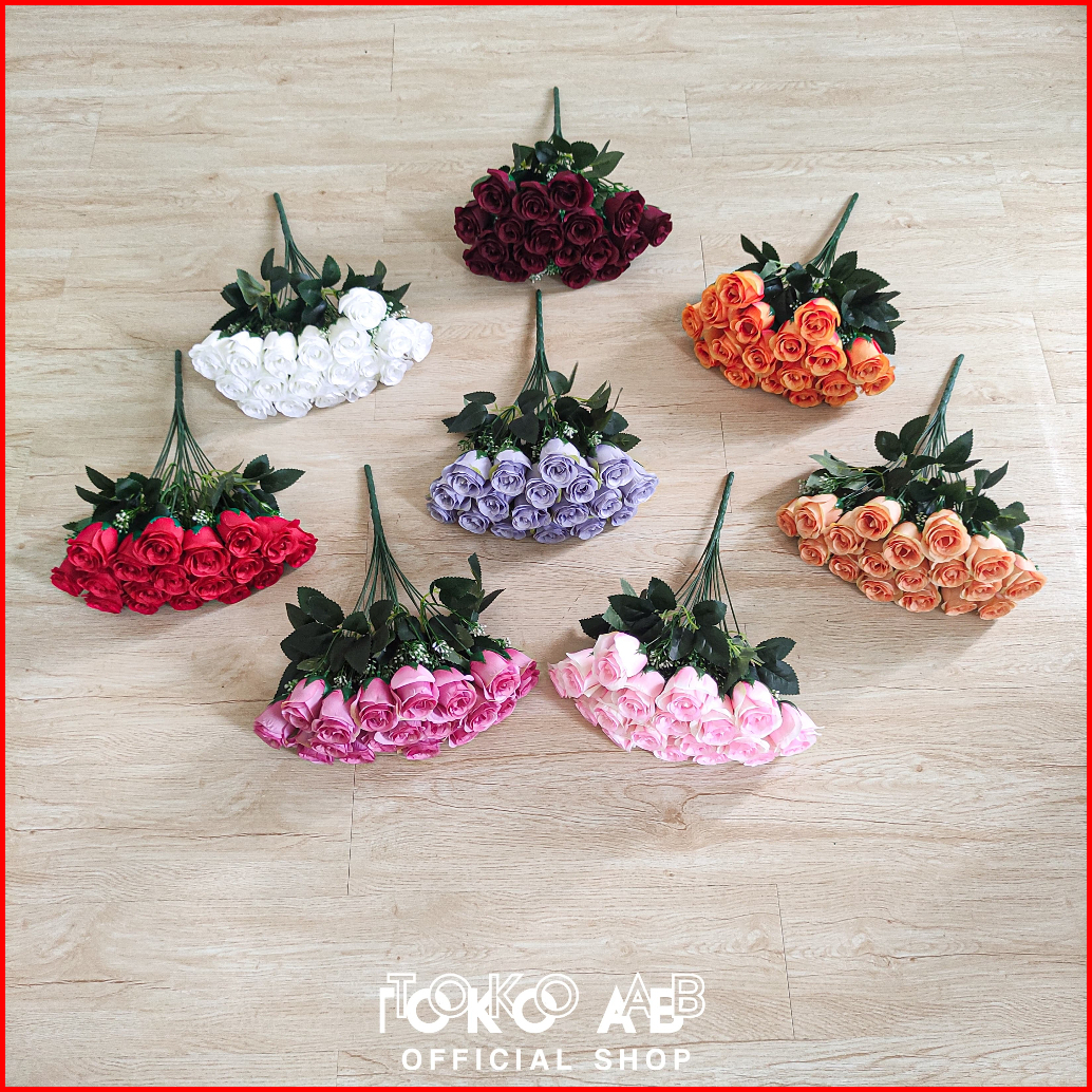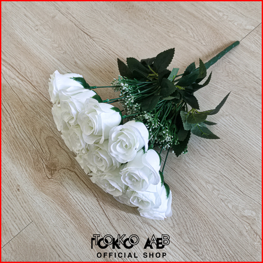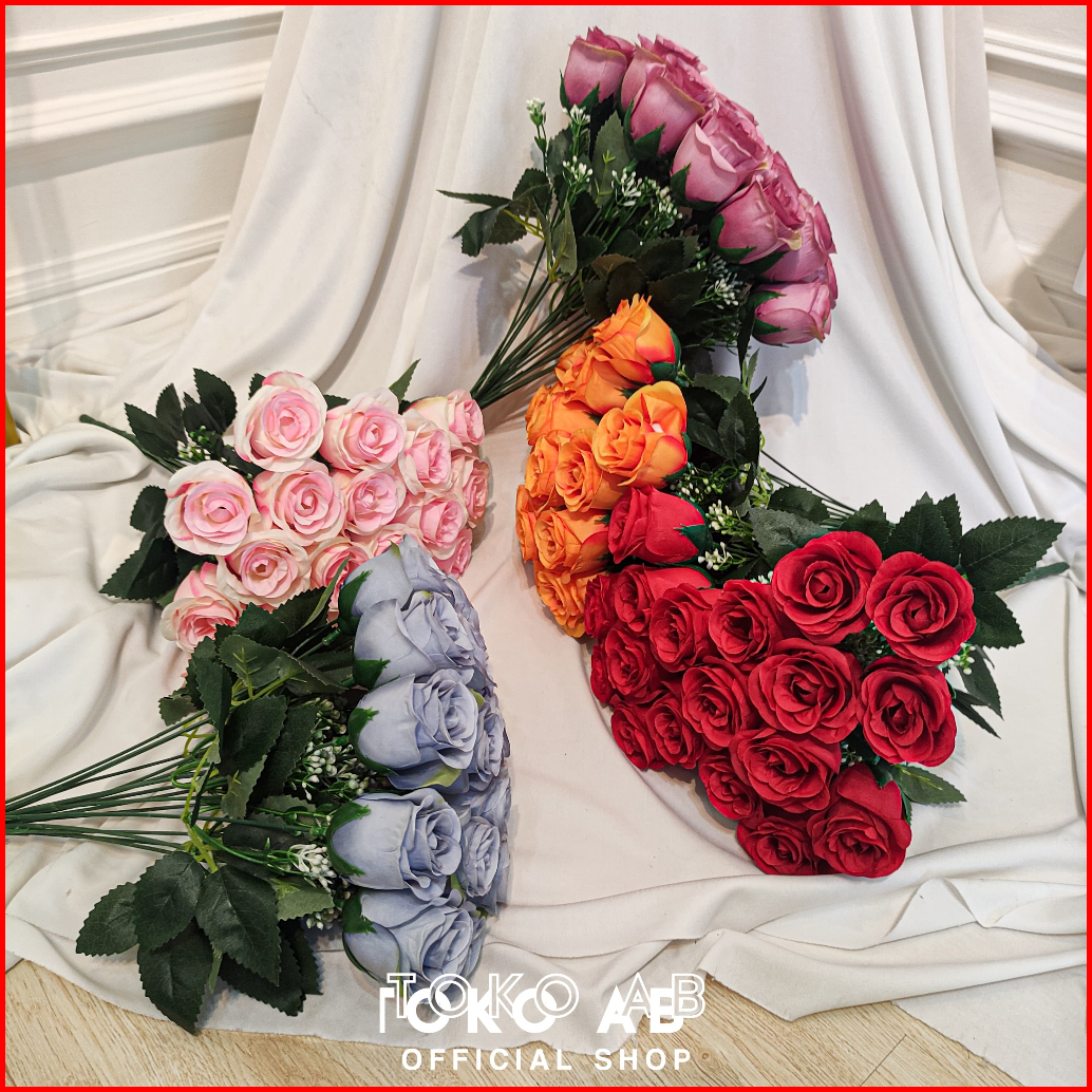 Bunga Artificial Giant Rose Premium 18 Cabang B8438 Bunga Mawar Palsu Bunga Hias Plastik Dekorasi Hiasan Ruang Tamu Deko