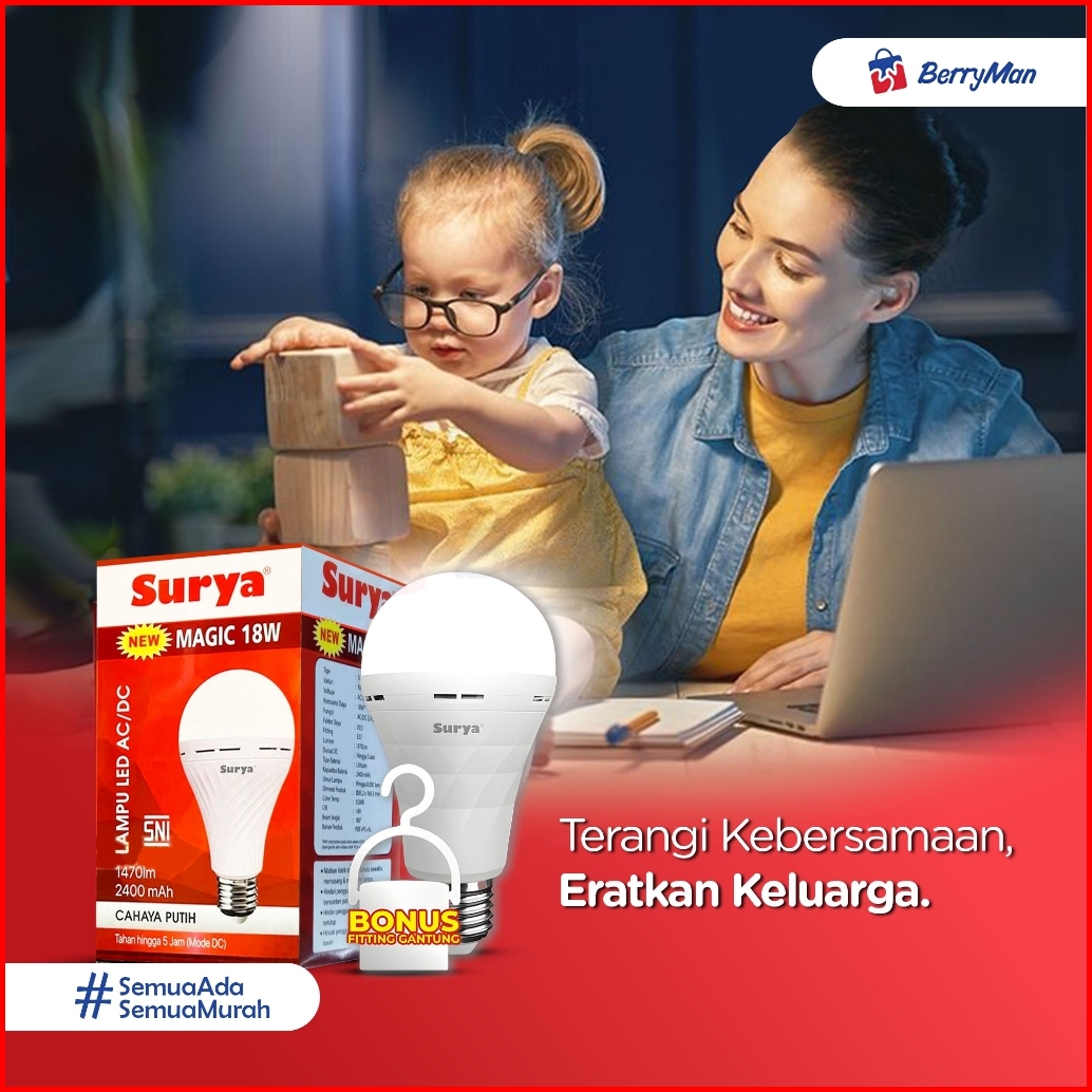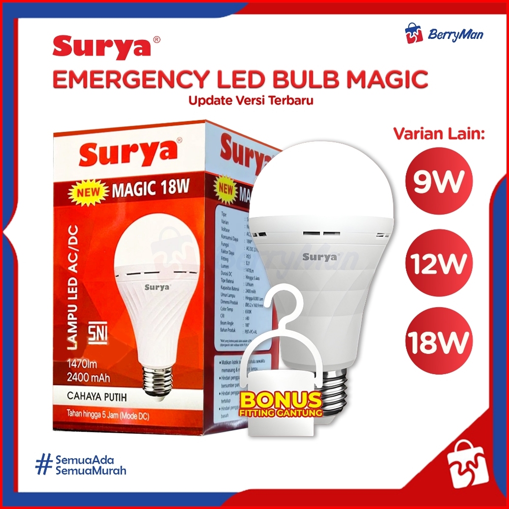 Surya Magic Ii Lampu Bohlam Led Emergency Tipe Ac Dc 9w 12w 18w Cahaya Putih Super Terang