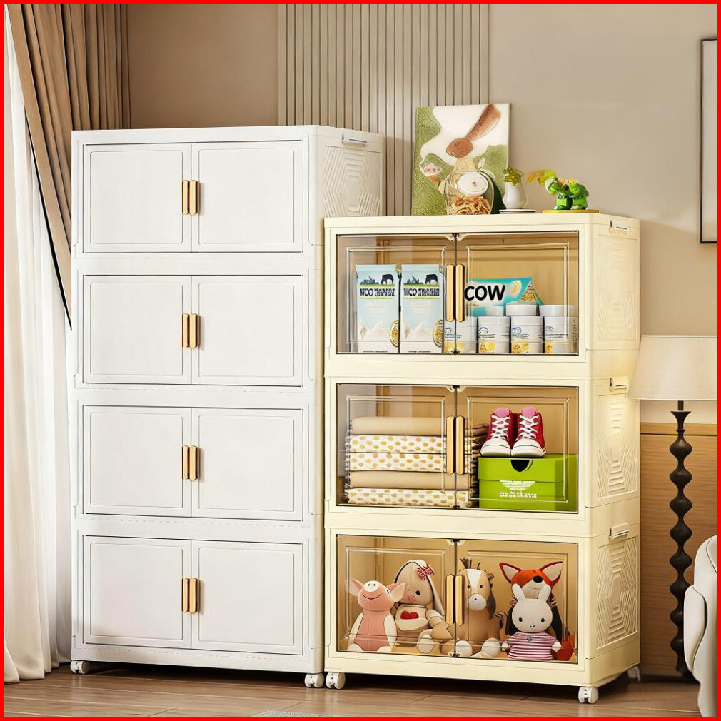 Lemari Lipat 2 Pintu 42cm -rak Serbaguna 2 Susun Untuk Lemari Baju Mainan Anak Hemat Ruang