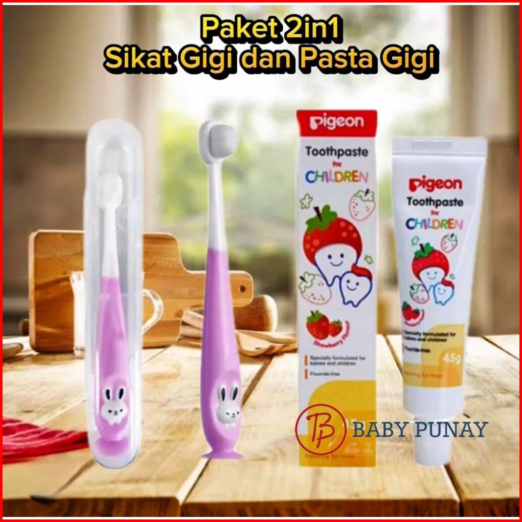 Paket Sikat Pasta Gigi Pigeon Bayi Dan Sikat Gigi Bulu Lembut 2in1 Sikat Gigi Bayi Bulu Halus Pasta Gigi Bayi