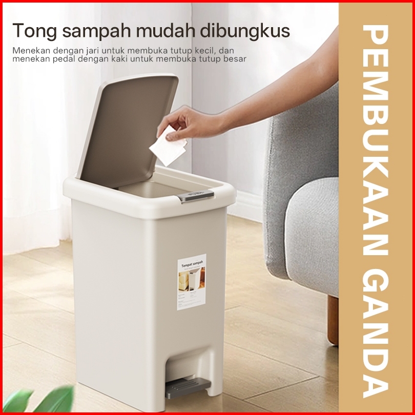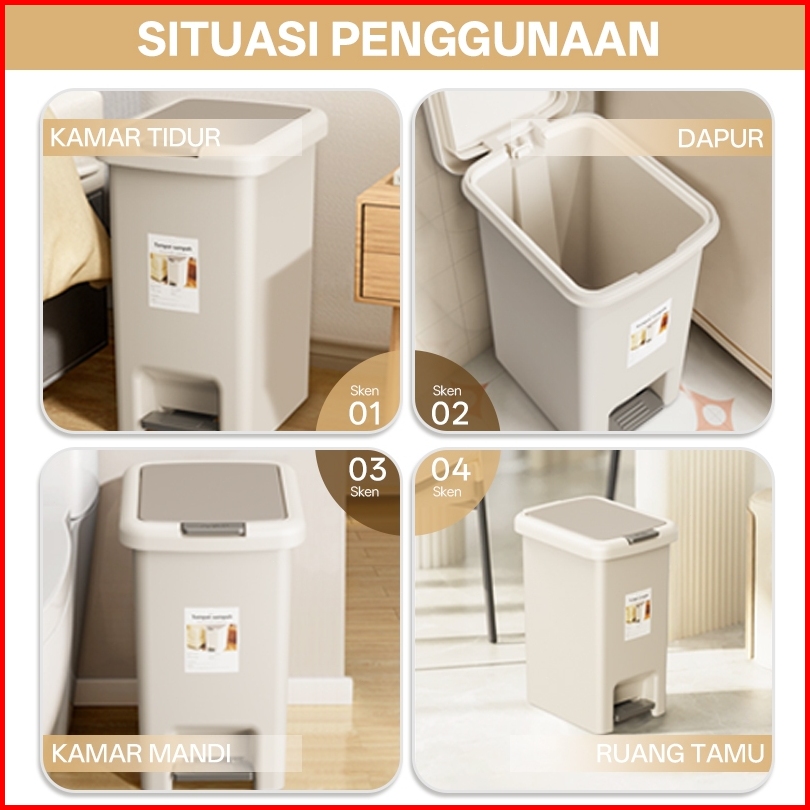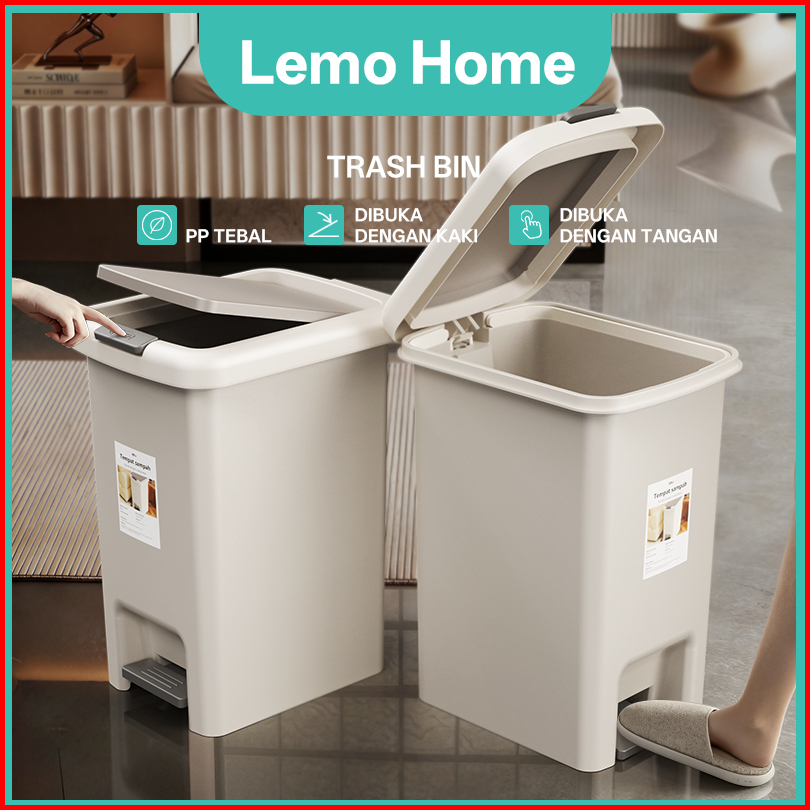 Lemo Home Tempat Sampah Injak 15l - Kotak Sampah Plastik Tertutup Anti Bau Trash Bin Untuk Dapur Kamar Mandi Ruang Tamu
