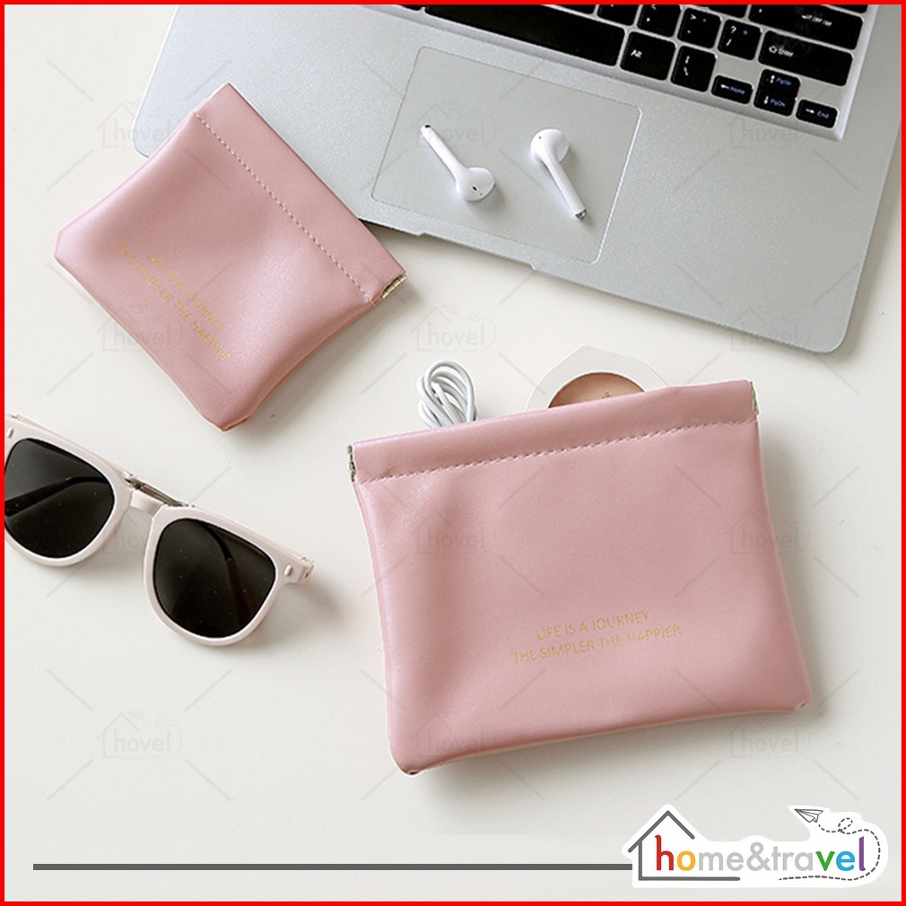 Hovelshop Pouch Kulit Kecil Kotak Pembalut Organizer Mini Dompet Koin Card Holder Make Up Travelling Kosmetik Souvenir