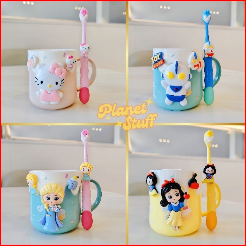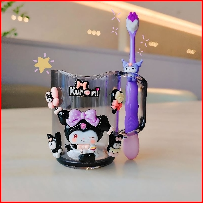 Planet Stuff - 1 Set Gelas Kumur Dan Sikat Gigi Anak Bulu Lembut Karakter Kartun Kuromi Lotso 3d