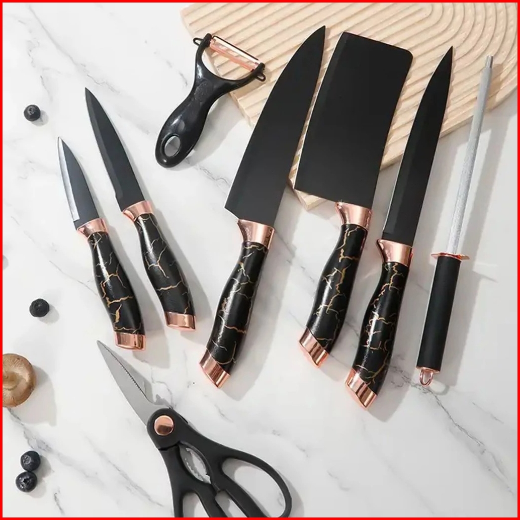 Aveline Pisau Set Marble Multifungsi Isi 9pcs 7pcs Stainless Steel Marble Pisau Stainless Steel Multifungsi Koki Alat Da