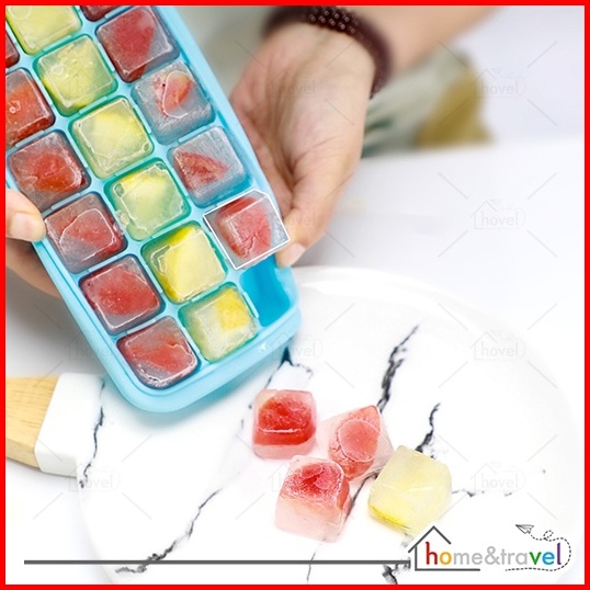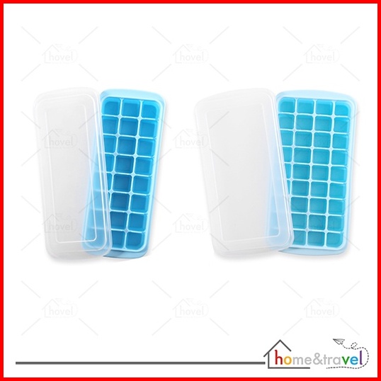 Hovelshop Alat Cetak Es Batu Pudding Sekat Silikon Kotak Anti Pecah Ice Cube Dengan Tutup