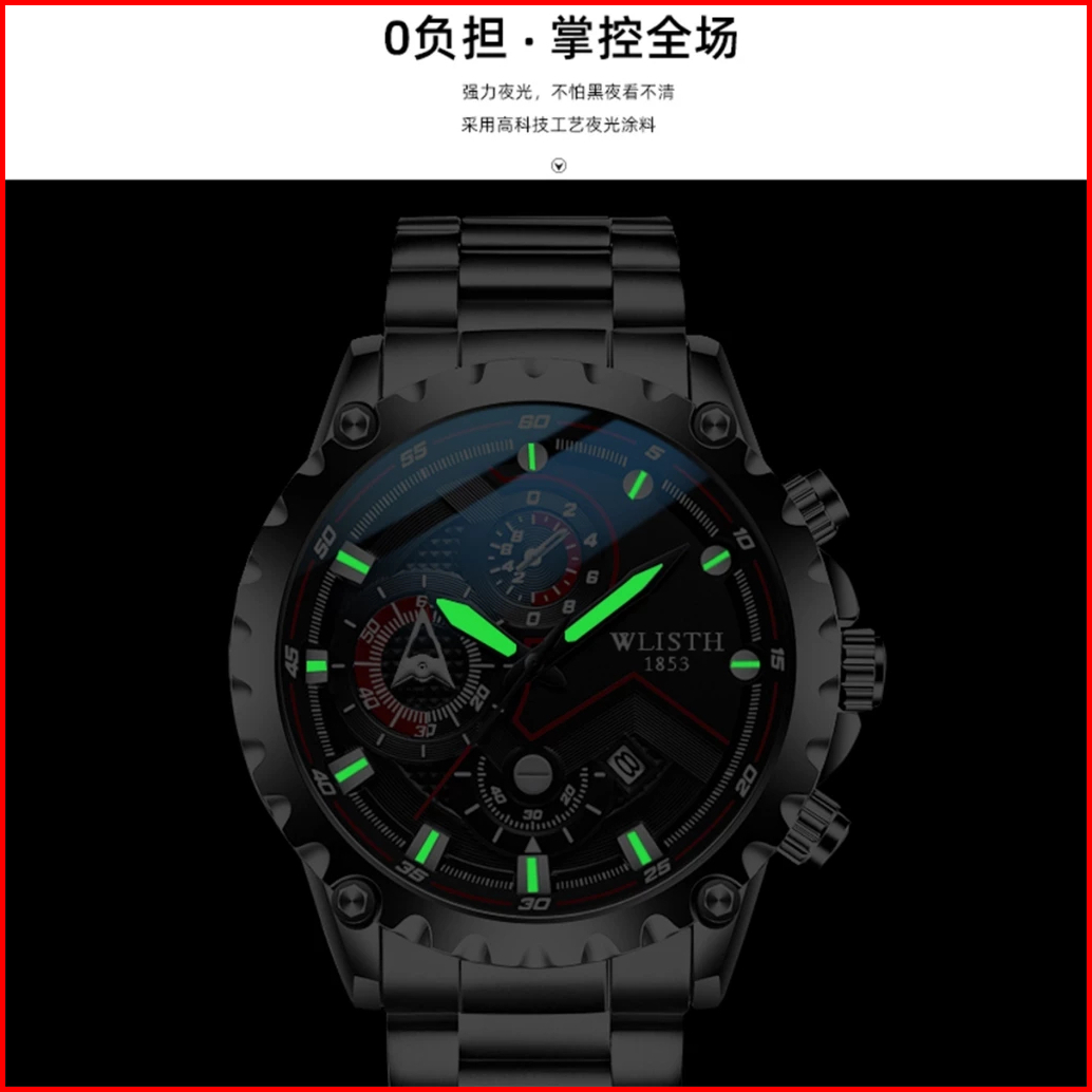 Wlisth S6137 Jam Tangan Pria Luxury Stainless Steel Quartz Original Waterproof