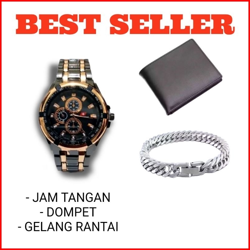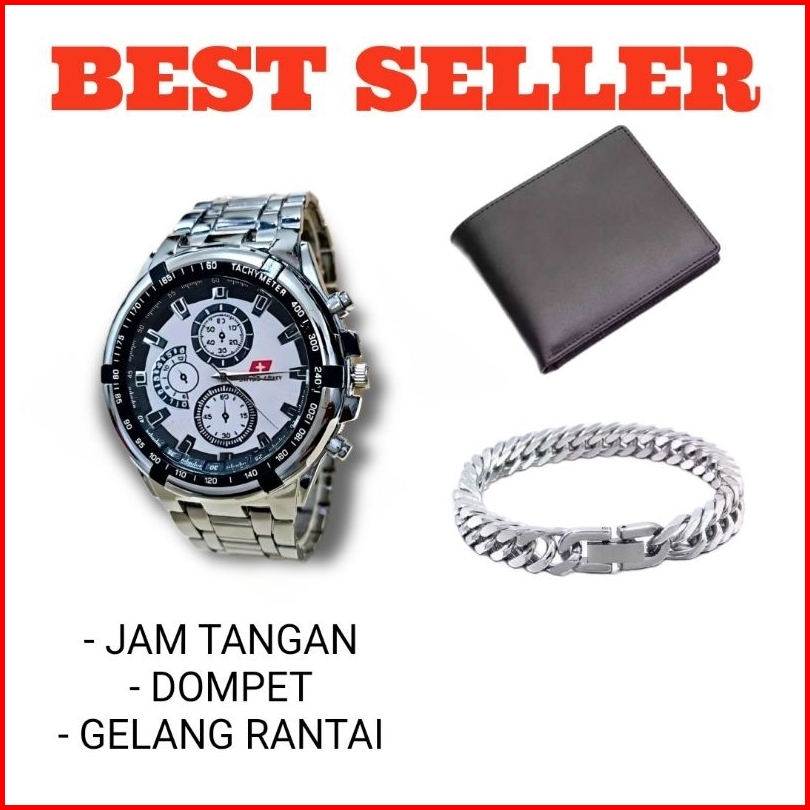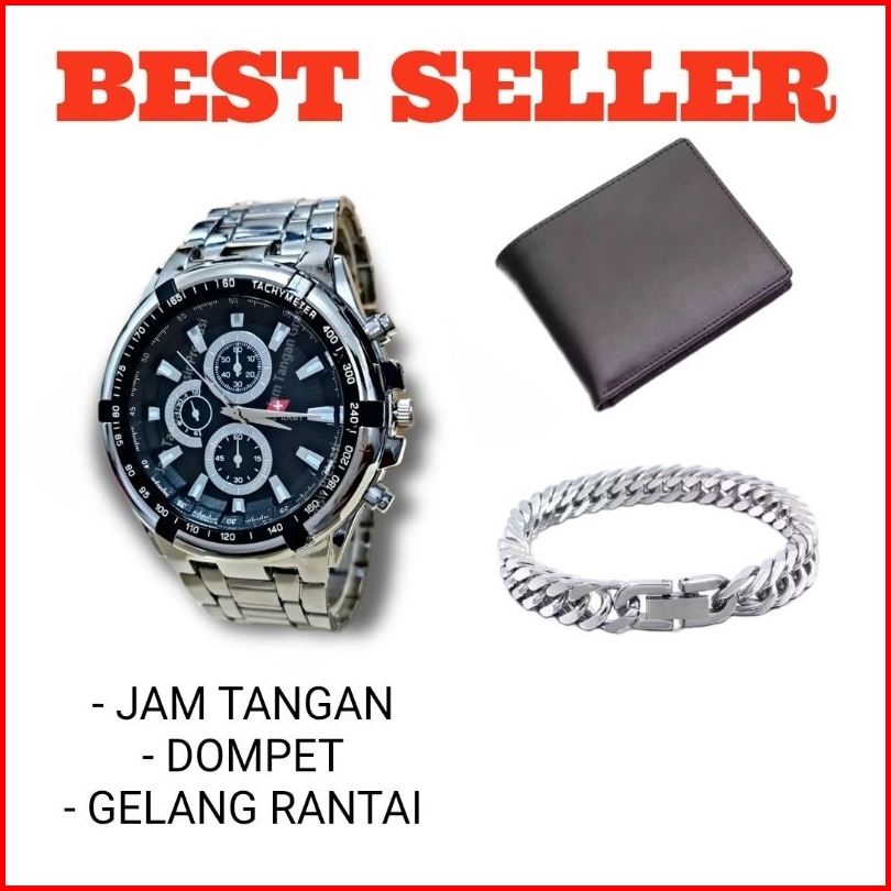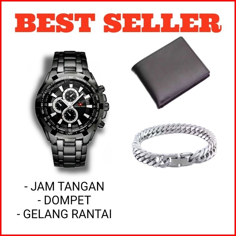Jam Tangan Pria Sa Rantai Sport Free Dompet Gelang Rantai Keren Paket Super Hemat