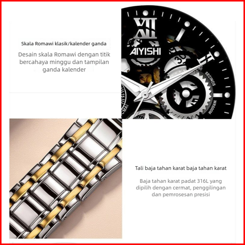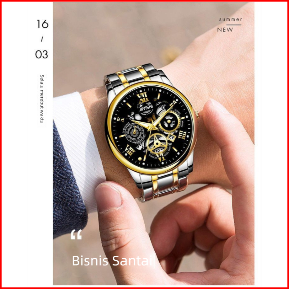 New Sale Jam Tangan Pria Original Display Kuarsa Cahaya Malam Anti Air Tali Stainless Steel Santai Mode Jam Tangan Cowok