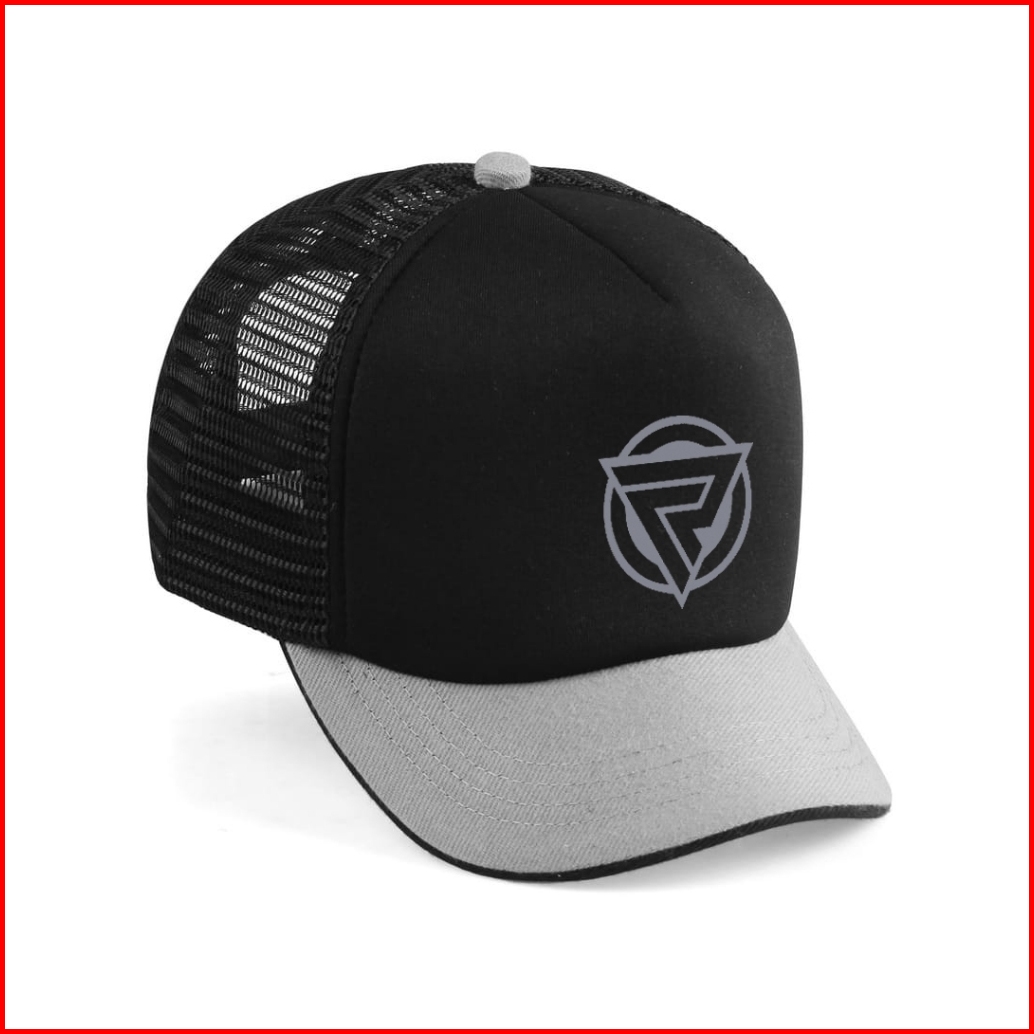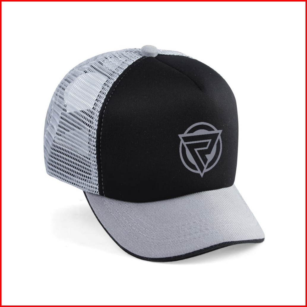 Topi Trucker Hitam Abu-abu Lidah Pendek Hats Jaring Baseball - Visor 5cm