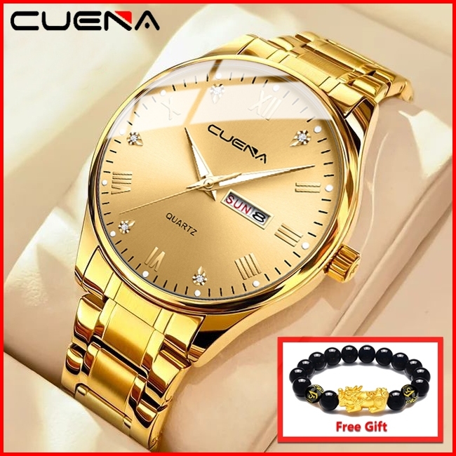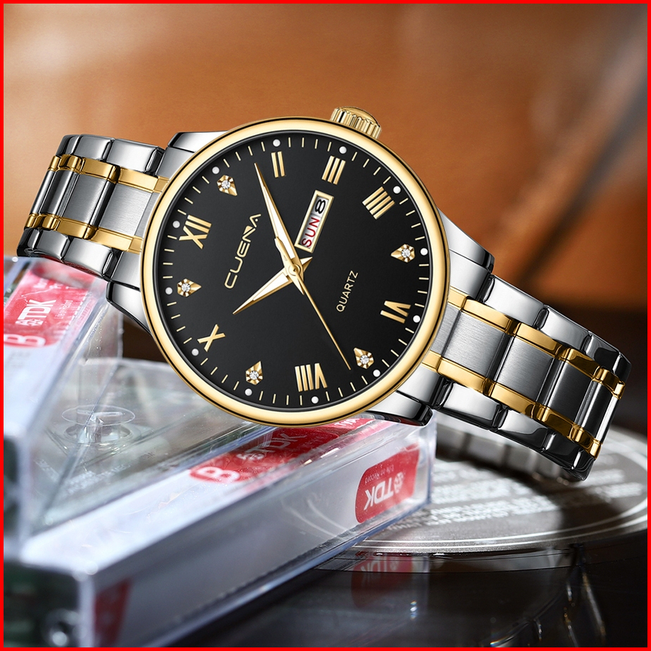 Cuena Jam Tangan Pria Original Anti Air Tahan Keren Luxury Kalender Ganda Analog Stainless Steel Watch For Men Model 612
