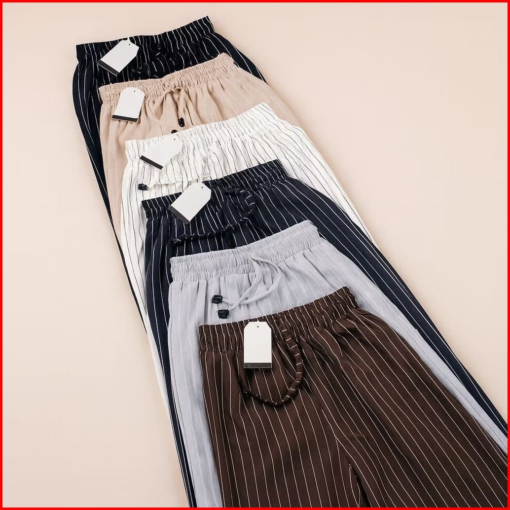 Everyday Pants - Stripe Pants Bangkok - Celana Panjang Highwaist Wanita Baggy Kantor Kuliah - Celana Kekinian Anak Muda