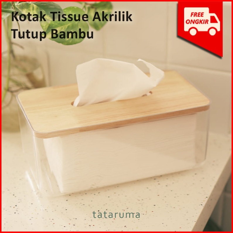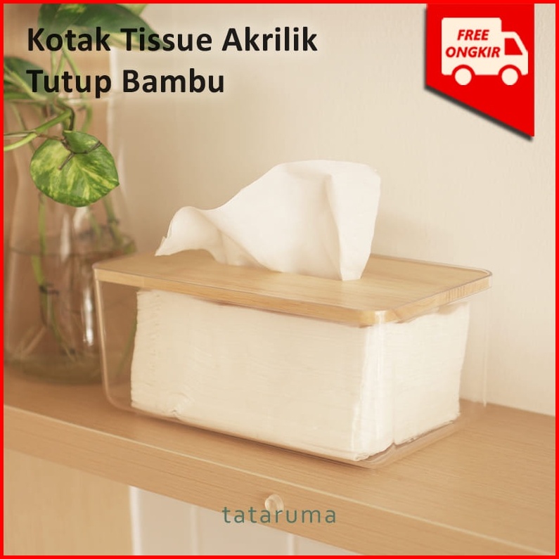 Tataruma Oshi - Kotak Tissue Tisu Transparan Tutup Bambu Estetik