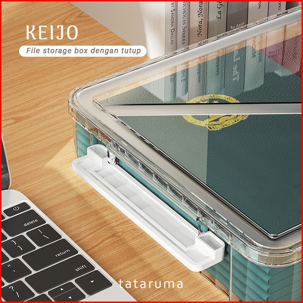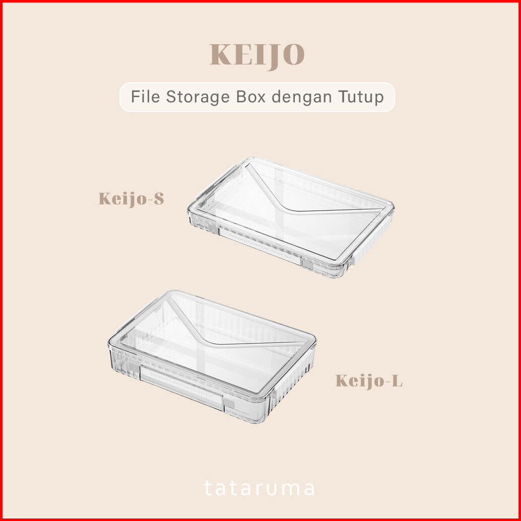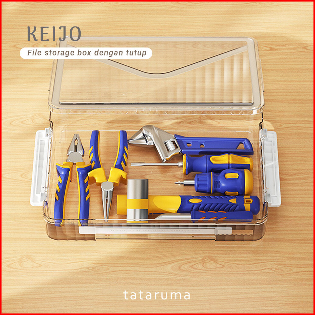 Tataruma Keijo - Kotak Penyimpanan Dokumen Dengan Tutup Serbaguna File Box Tray Transparan