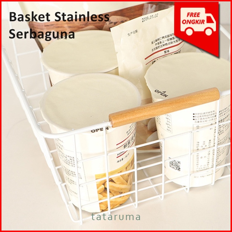 Tataruma Kusumi - Basket Stainless Serbaguna Tempat Penyimpanan Keranjang Makanan Ringan Besi Ala Jepang Korea Dengan Ha