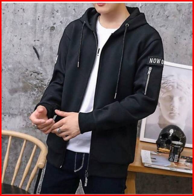 Jaket Pria Now Ori Hoodie Bomber Ziper Beludru Cowo