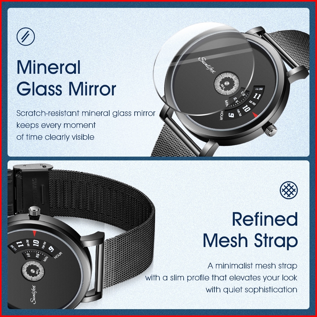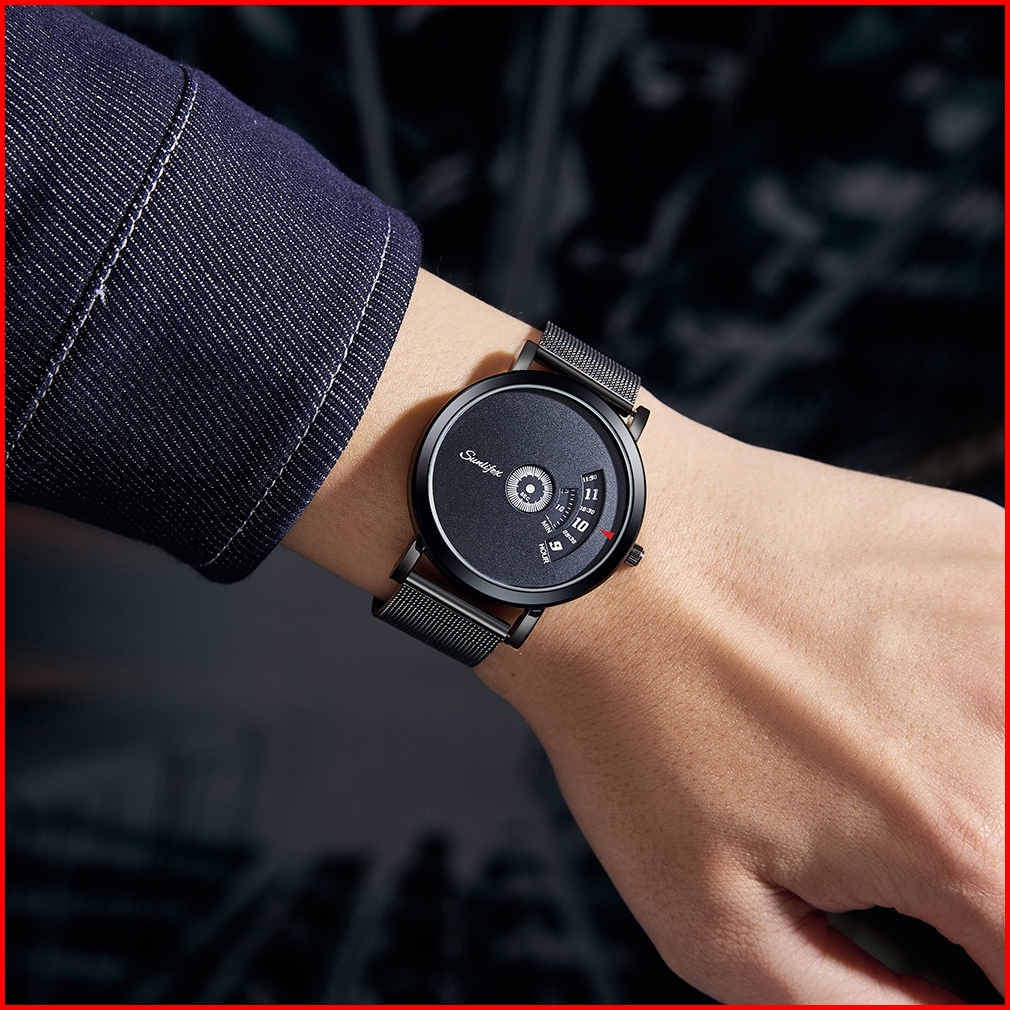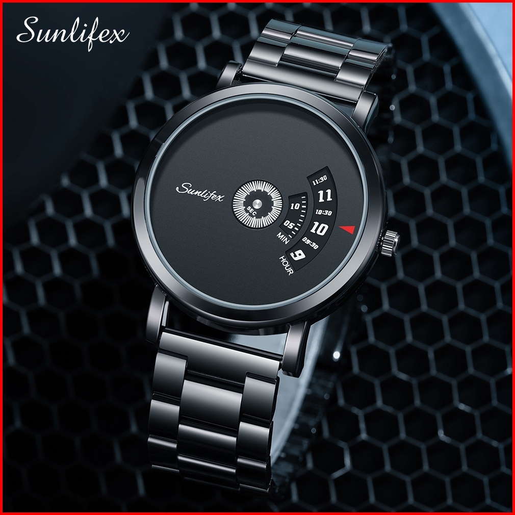 Sunlifex Jam Tangan Pria Quartz Kalender Kasual Tali Stainless Steel Jam Tangan Cowok 3173