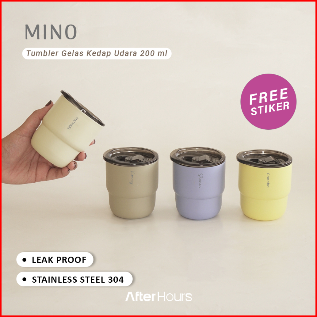 After Hours Mino - Tumbler Gelas Stainless 304 Kedap Antibocor 200ml Tahan Panas 2 Jam Dingin 4 Jam Grafir Nama