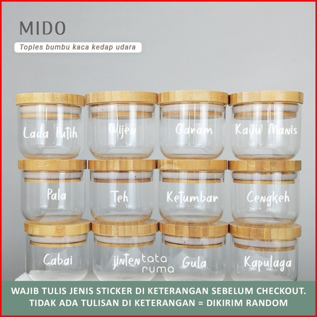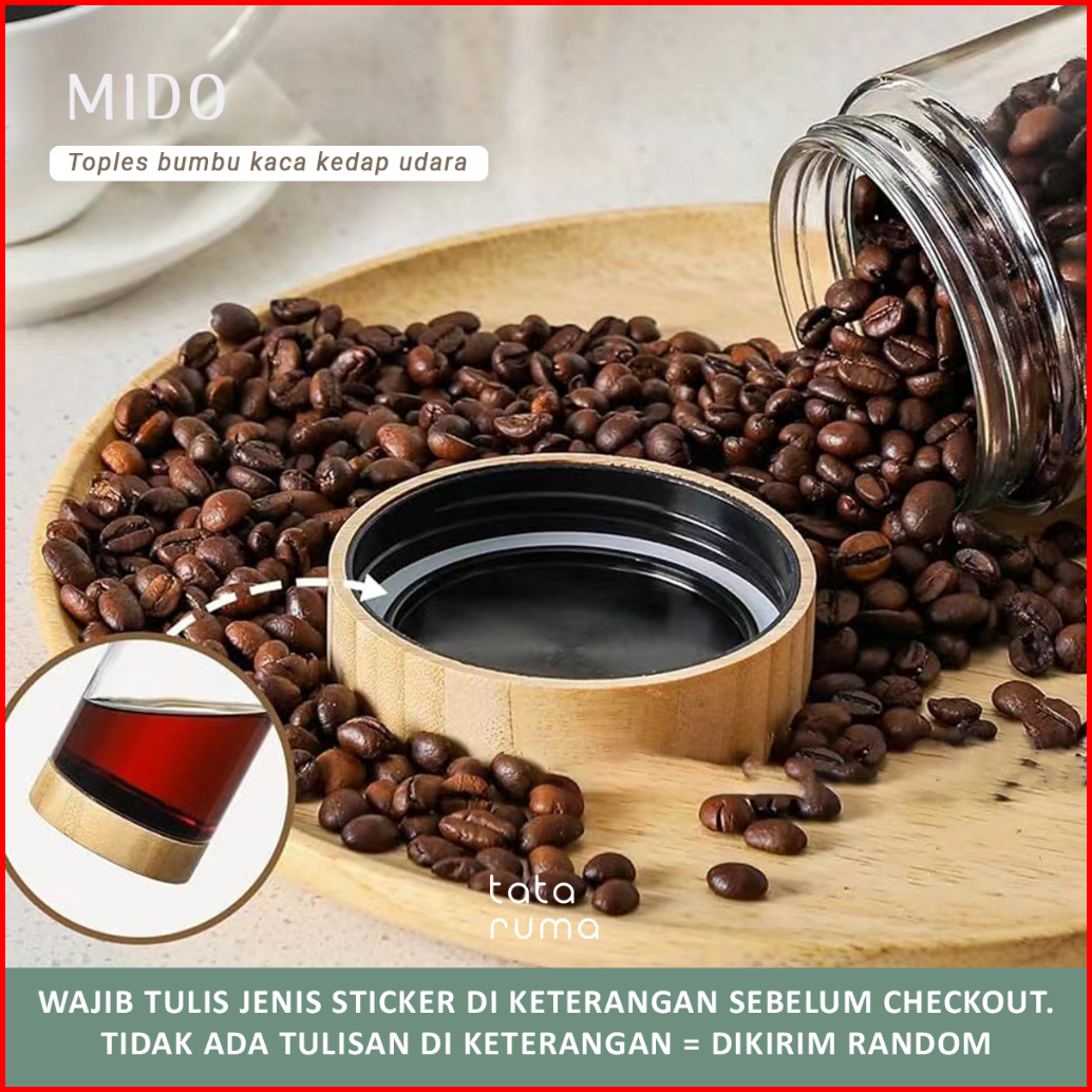 Tataruma Mido Satuan - Toples Bumbu Kaca Tutup Bambu Tempat Wadah Rempah Gula Kopi Teh Mini Bamboo Jar