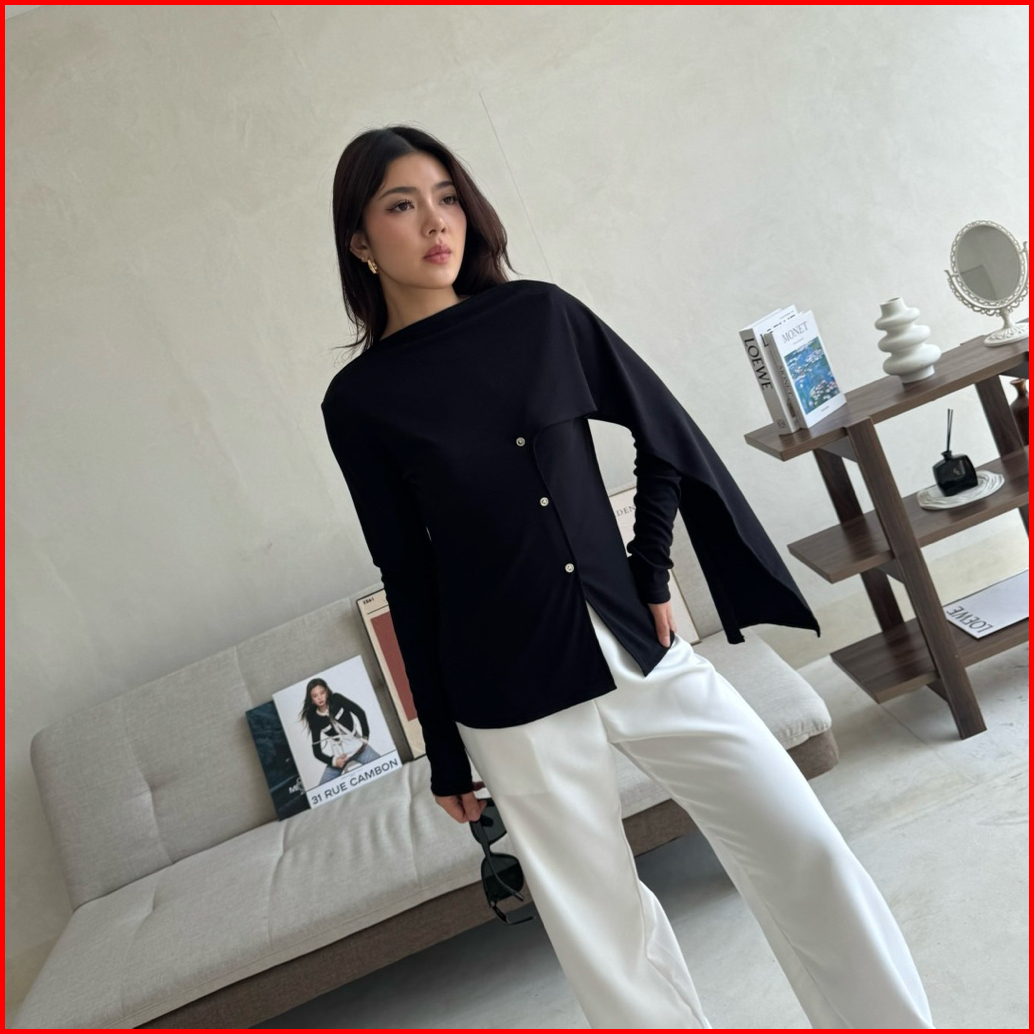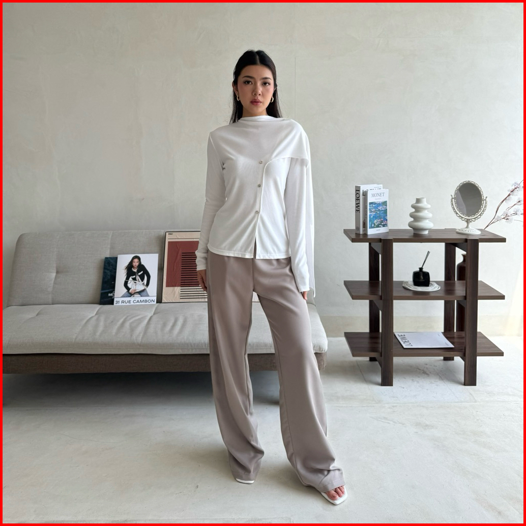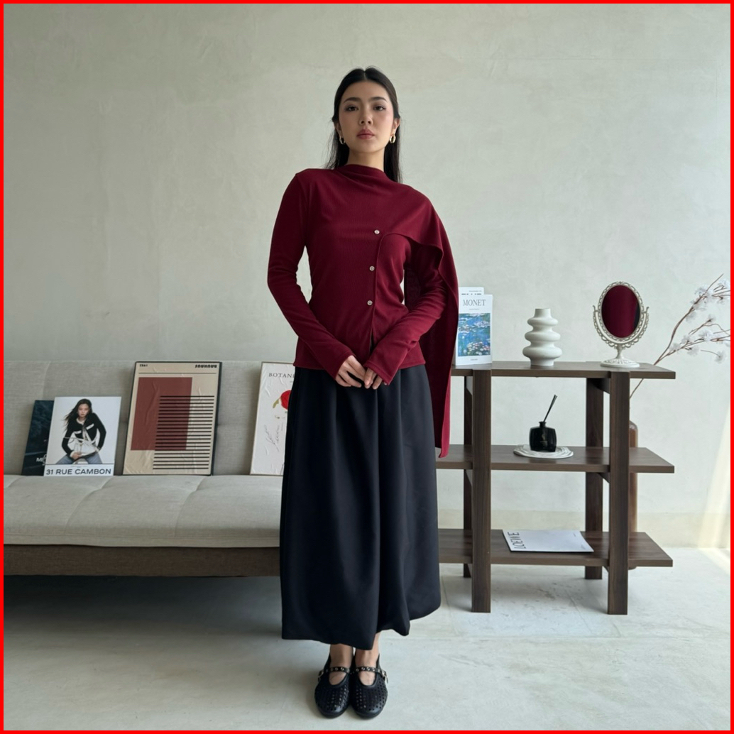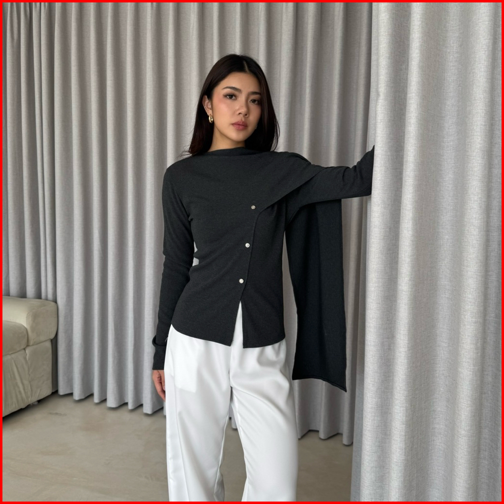 Elsie Top - Atasan Knit Wanita Lengan Panjang Scarf Kancing Basic Korean Vest Top Summer Baju Knit Kancing Rib Wanita Lo