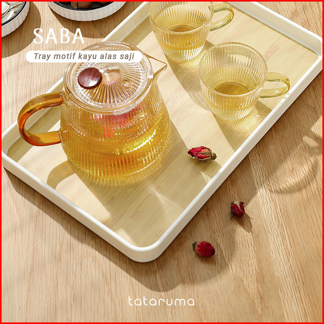 Tataruma Saba - Tray Aksen Kayu Baki Motif Plastik Estetik Nampan Alas Saji Teh Kopi Jus Minuman Snack