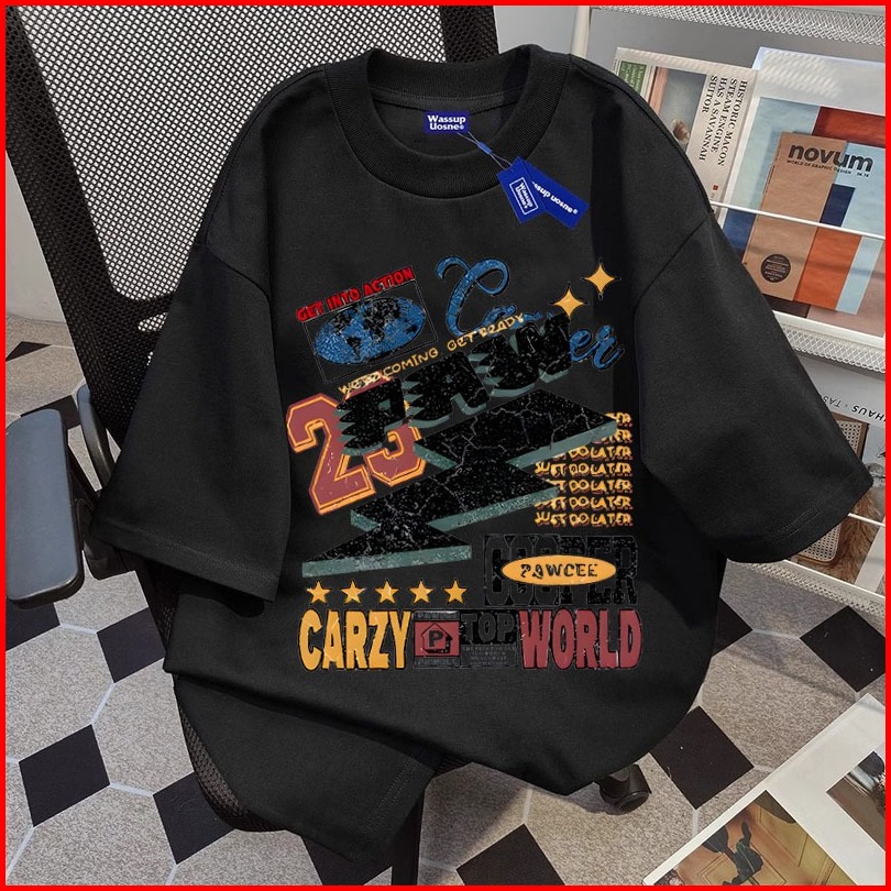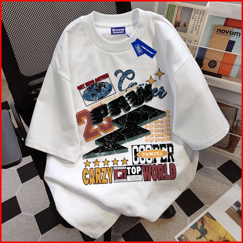 Boombap American Retro Style T-shirt Oversize Carzy World Print Top Kaos Wanita Putih Kaos Pria Dan Wanita Street Style