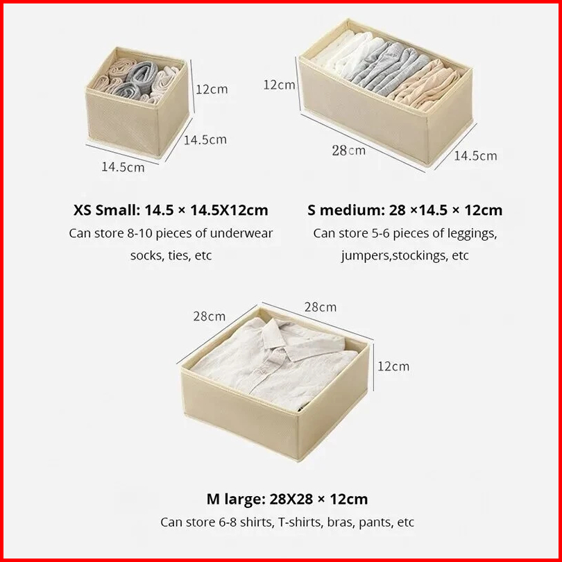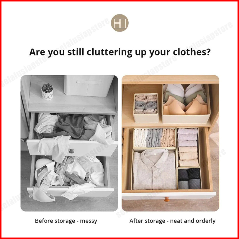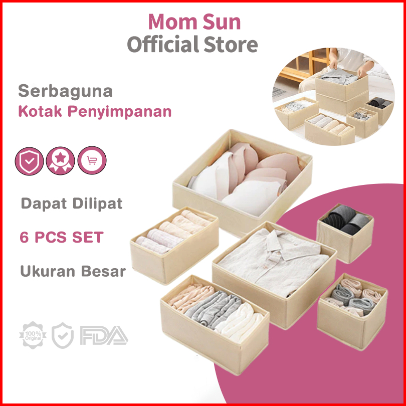 Mom Sun Kotak Penyimpanan Serbaguna Set Isi 6 Storage Box Organizer Kain Sekat Laci Lemari Tempat Penyimpanan Celana Dal