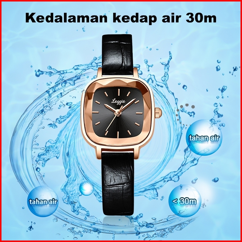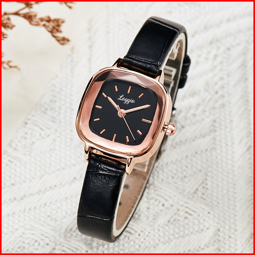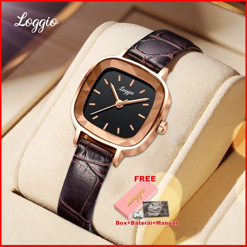 Loggio Jam Tangan Wanita Kecil Jam Original Jam Tangan Cewek Anggun Santai Square Dial Tali Kulit