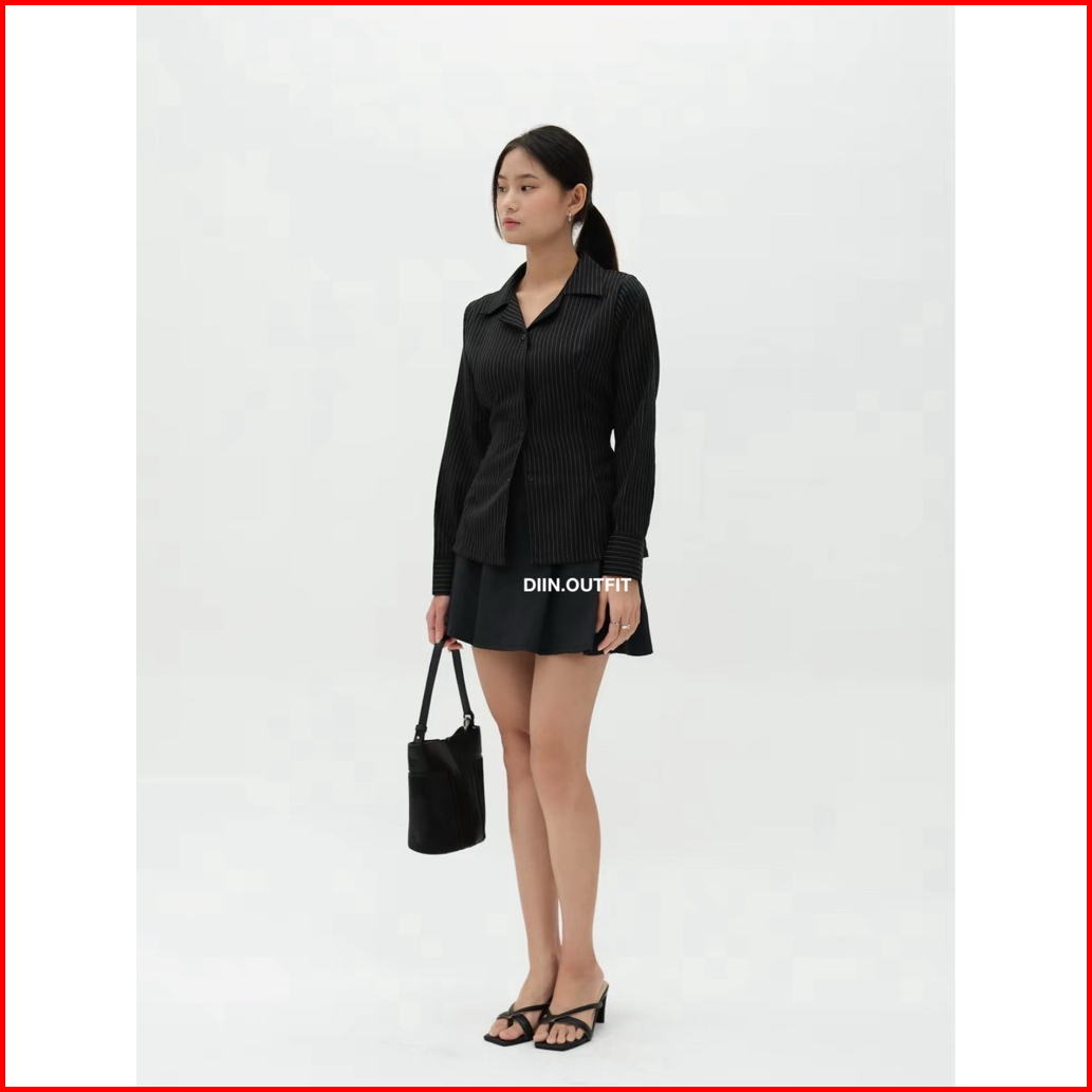 Lusy Shirt Kemeja Stripe Fitted - Kemeja Wanita Garis Lengan Panjang Fit Body - Kemeja Kerja Kantor