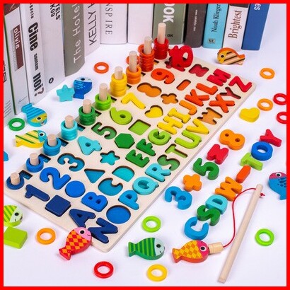 Gu Mainan Edukasi 7in1 Puzzle Kayu Anak Huruf Dan Angka Pancing Ikan Montessori Wooden Toys