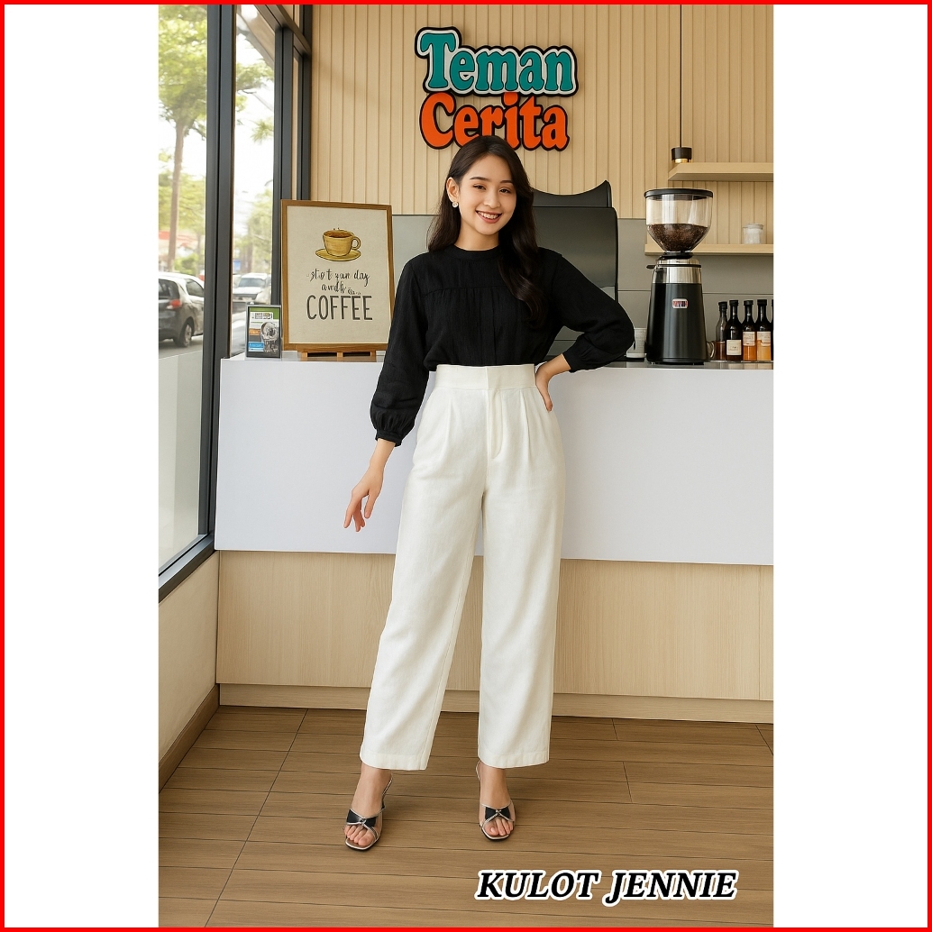 Celana Kulot Wanita Jennie Knit Kancing 2 Saku Kanan Kiri