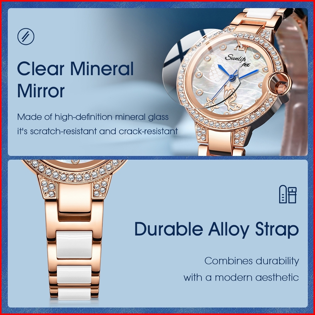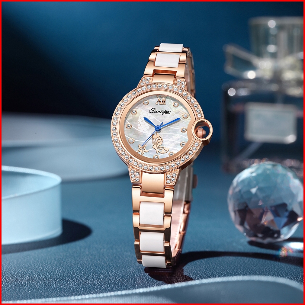 Sunlifex Jam Tangan Wanita Original 6031 Elegan Style Korea Berlian Jam Tangan Cewek Tali Keramik