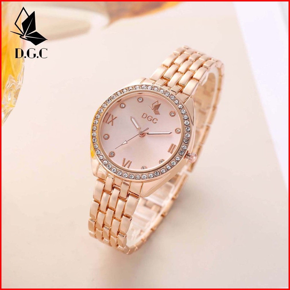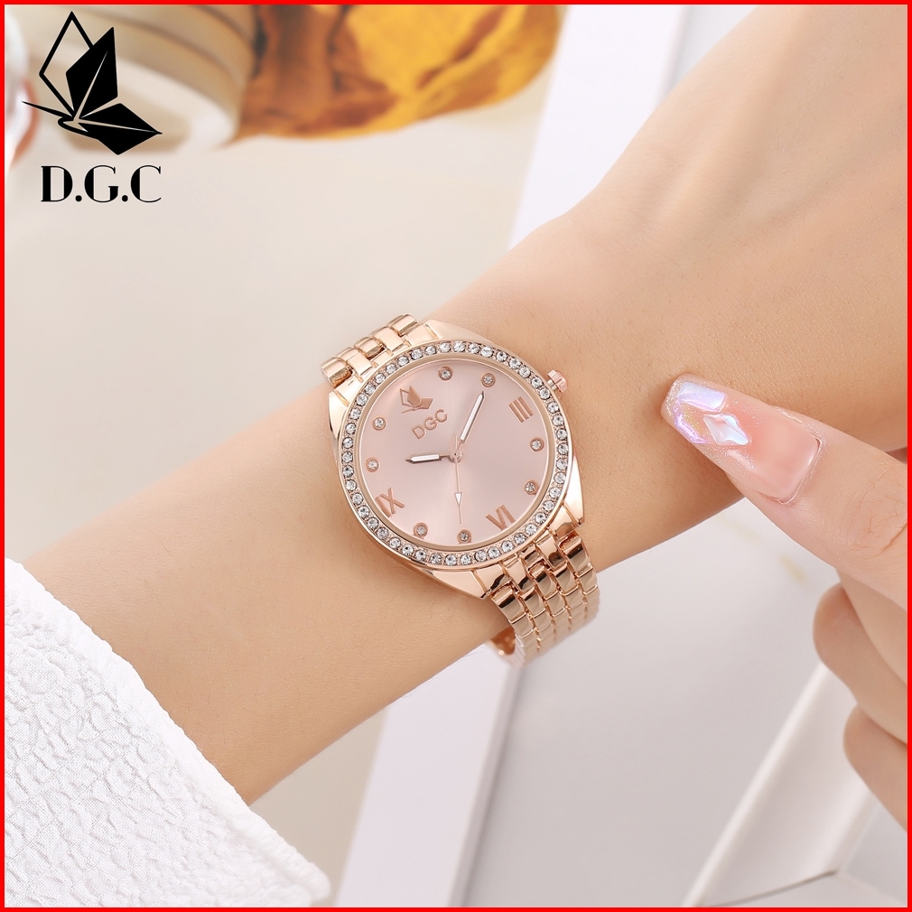 Dgc Jam Tangan Wanita Asli Jam Tangan Wanita Kuarsa Analog Berlian Bulat Rose Gadis Grosir G73
