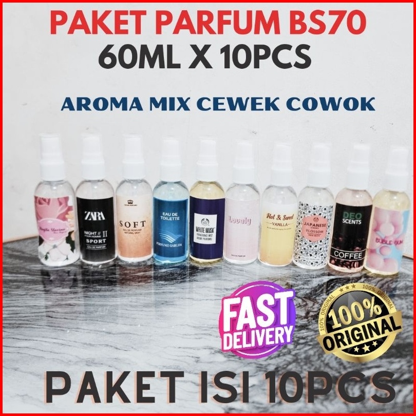 Paket 10 Botol Parfum Spray 70ml Aroma Mix Pria Wanita
