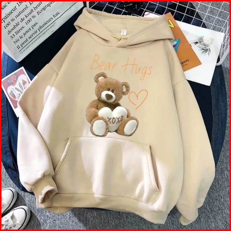 Sweater Hoodie Atasan Wanita Atau Remaja Kekinian Bear Hugs Size L-xl-xxl