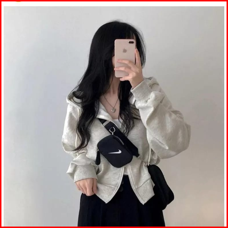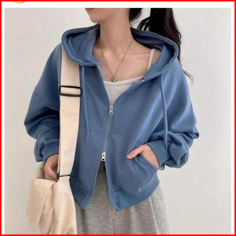 Basic Double Zipper Jaket - Jaket Polos Wanita Double Sleting - Jaket Croope