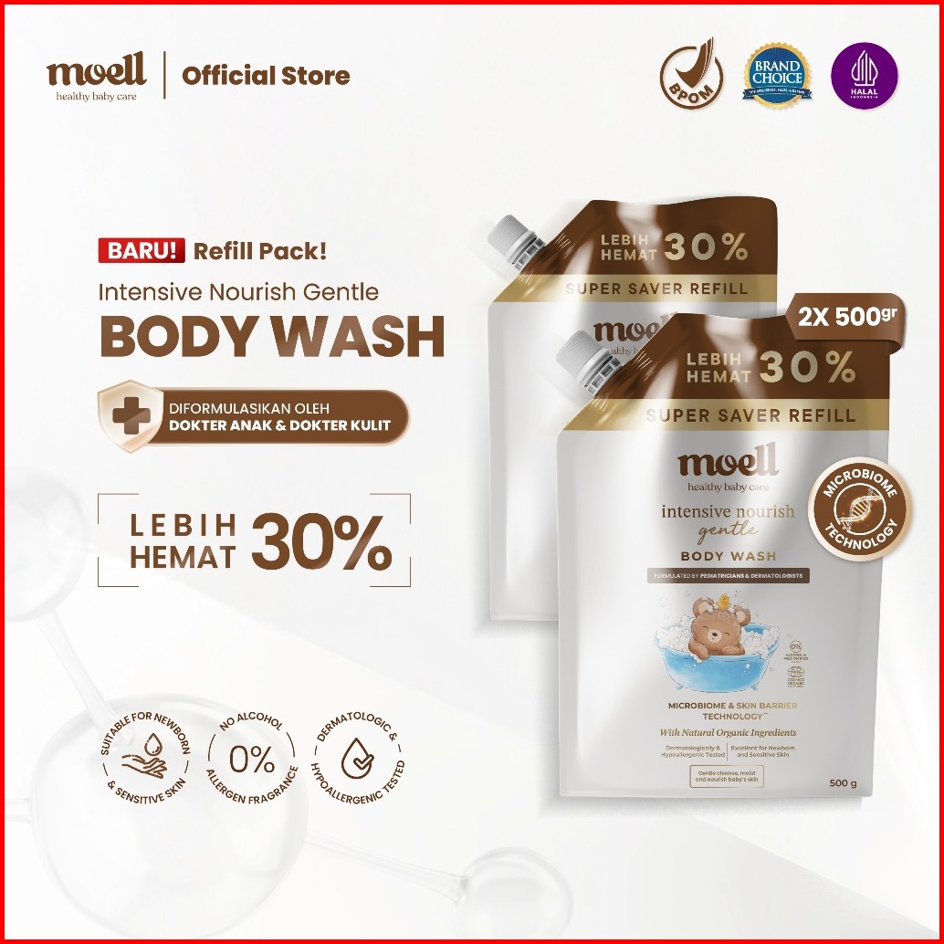 Moell Gentle Sabun Mandi Bayi Anak Kemasan Refill 500gr - Kulit Kering Dan Sensitif - Tanpa Sls Alkohol - Kulit Sensitif