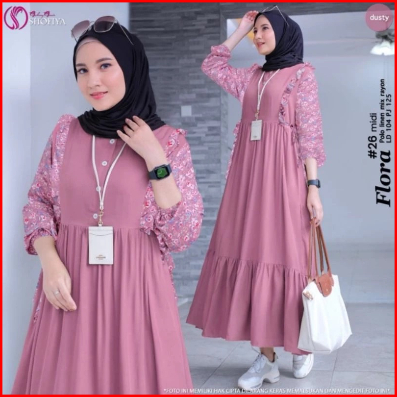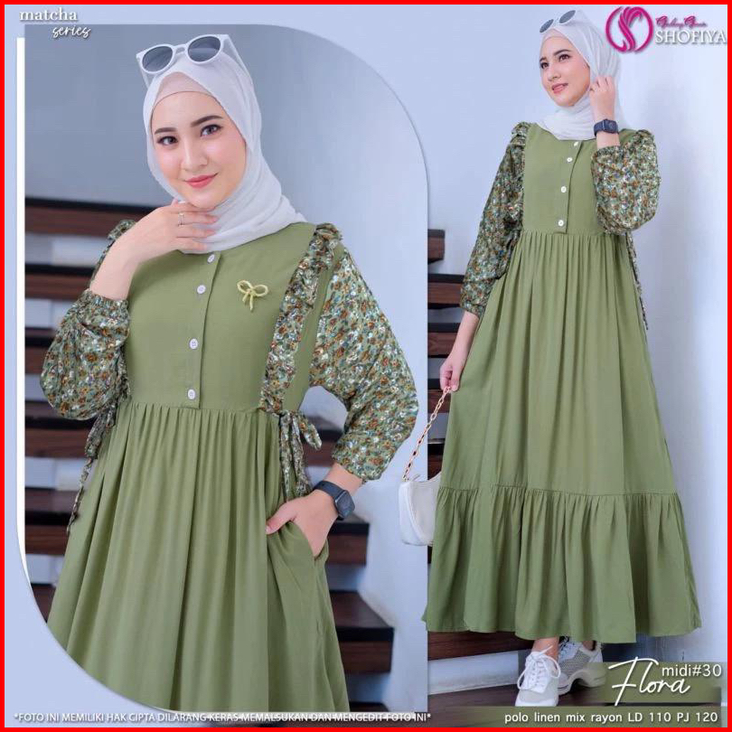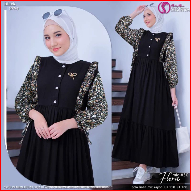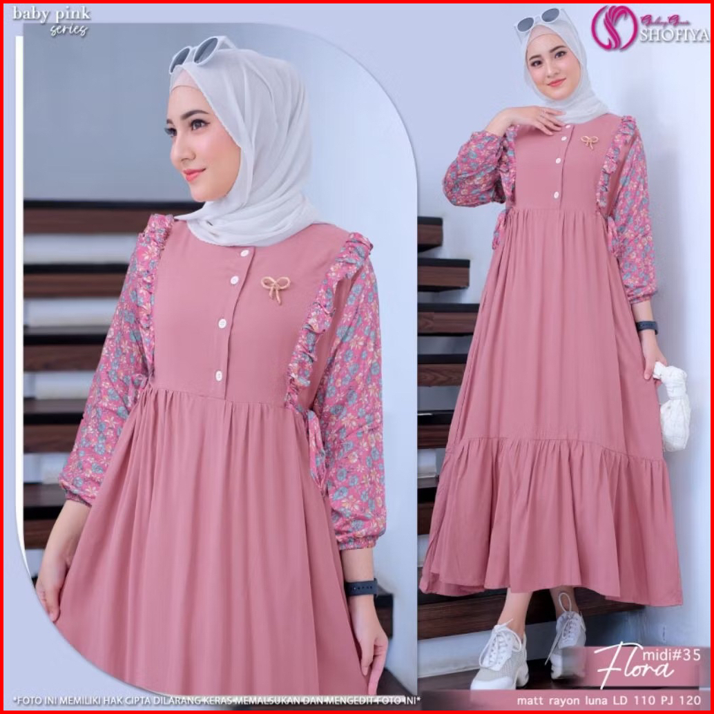 Gamis Flora Kombinasi Bahan Cringkel Airflow Mix Rayon Motif Bunga