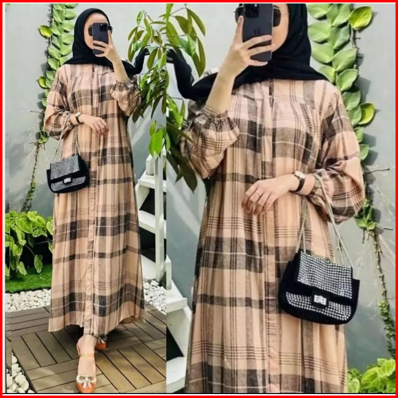 Gauri Dress Motif Kotak Bahan Rayon Diamond