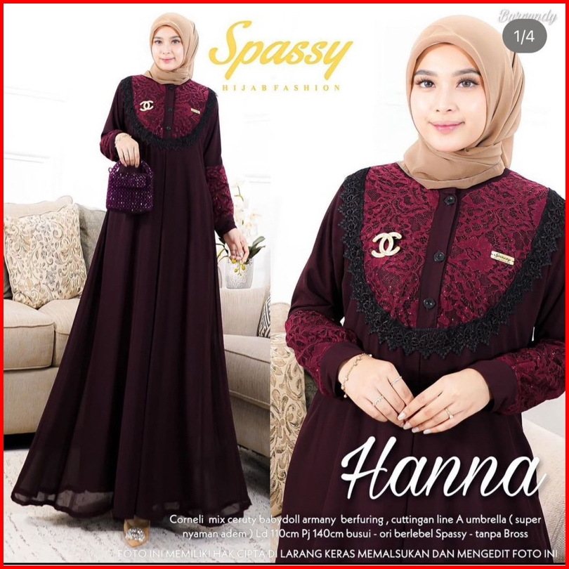 Gamis Hanna Brukat Mix Cringkkel Airflow Ld 110 Pb 135