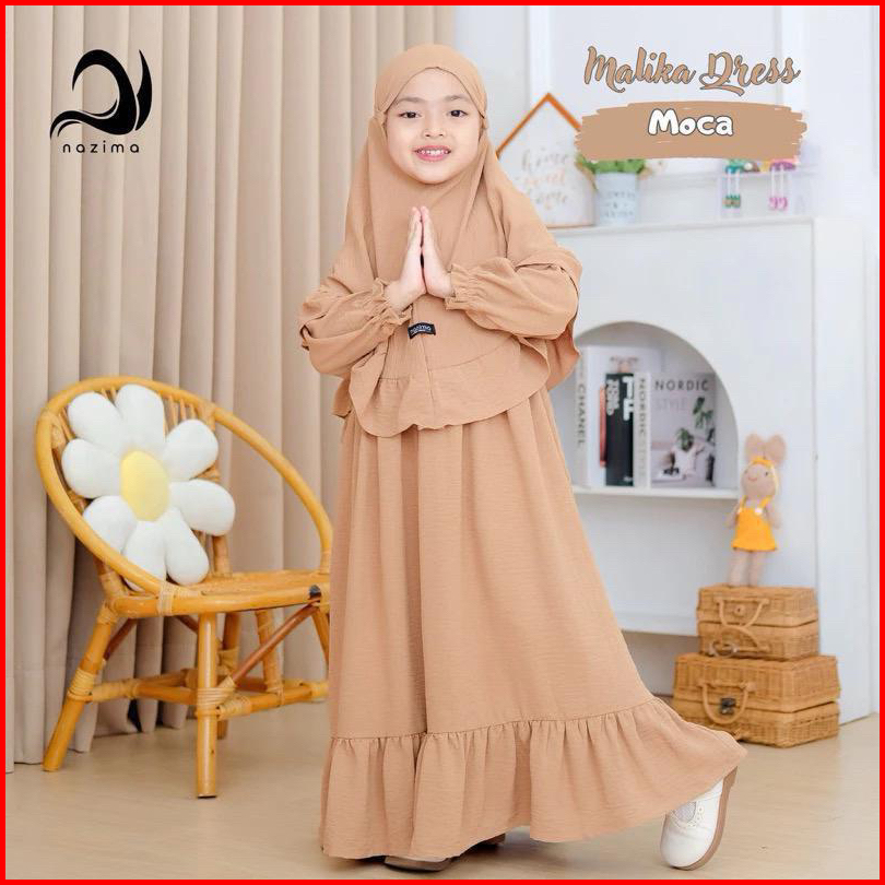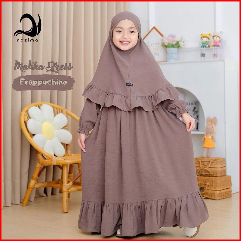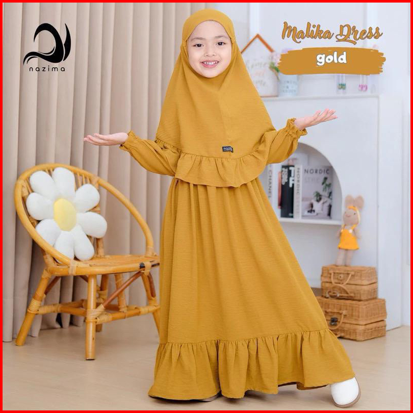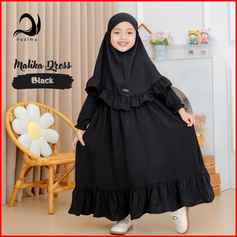 Gamis Polos Malika Set Hijab Anak Ld 90 Pb 110 Untuk Usia 8-12 Tahun