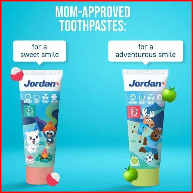Jordan Toothpaste Kids Step 1 0-5 Tahun Step 2 6-12 Tahun Pasta Gigi Anak Odol Anak Pasta Gigi Perawatan Gigi Anak