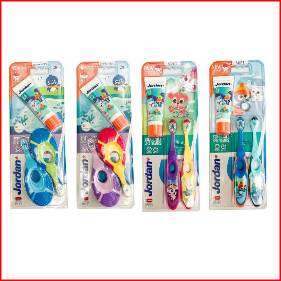 Jordan Paket Twin Pack Buy 2 Tooth Brush Free 1 Toothpaste Pasta Gigi Dan Sikat Gigi Anak