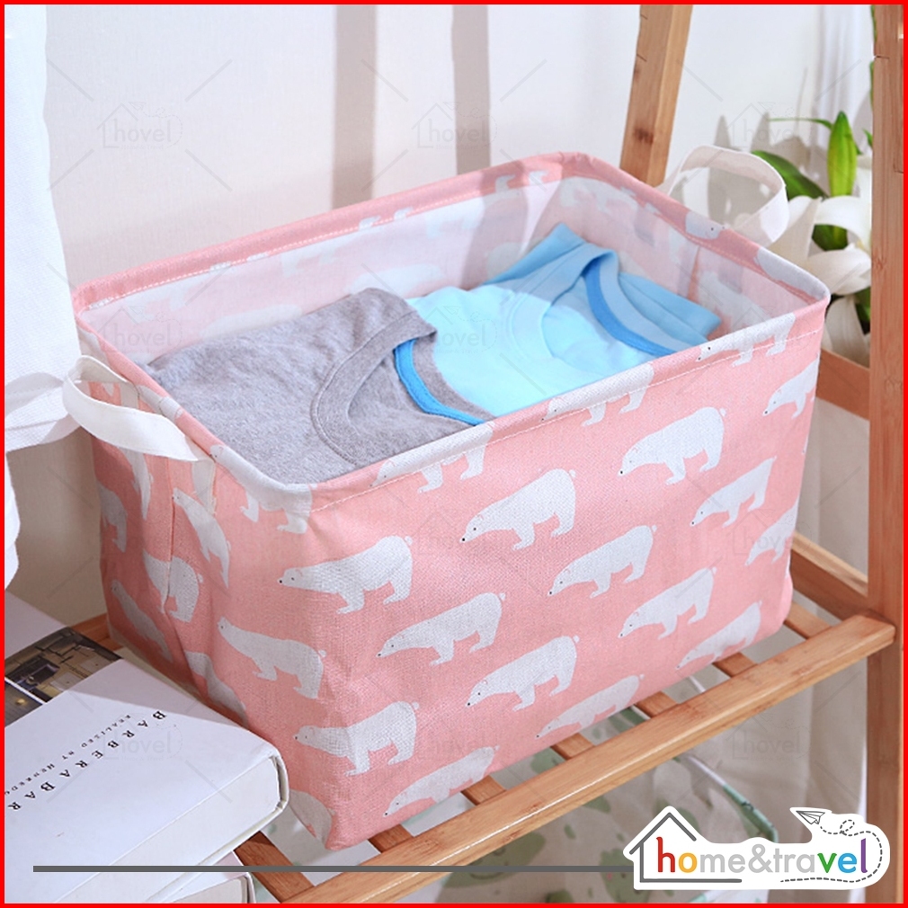 Hovelshop Keranjang Penyimpanan Baju Laundry Desktop Canvas Storage Box Bisa Dilipat Multifungsi