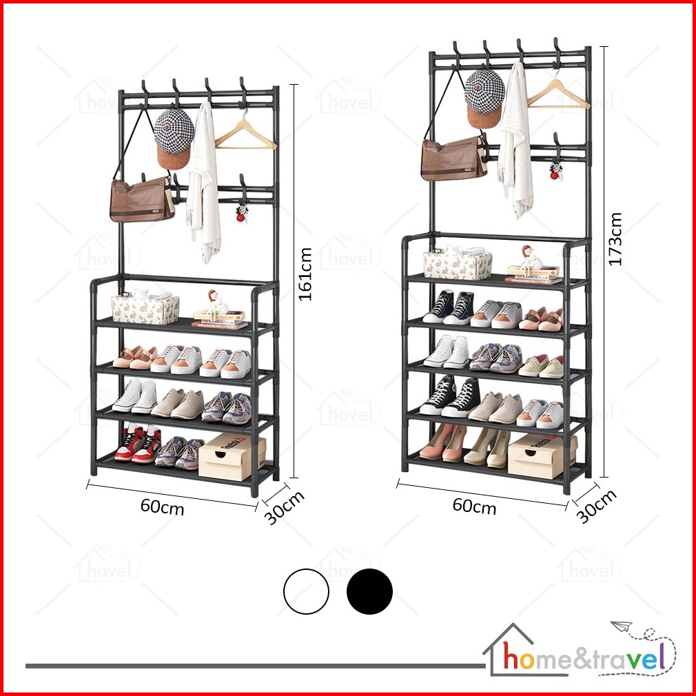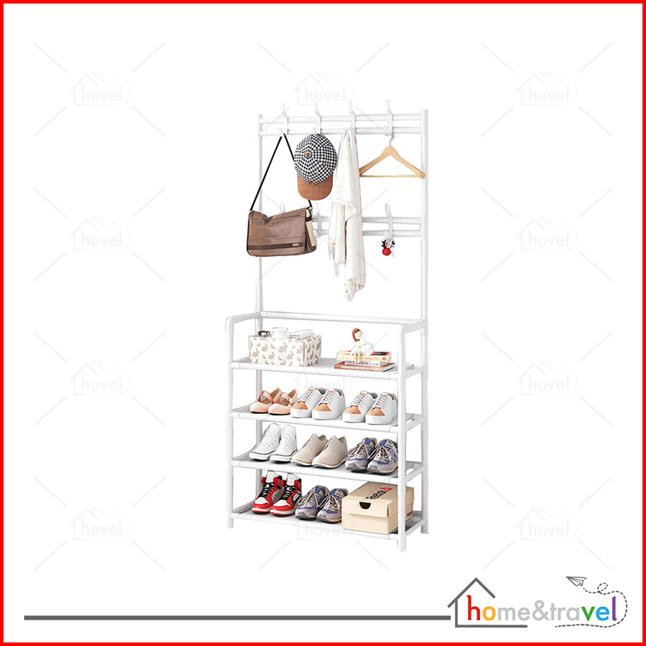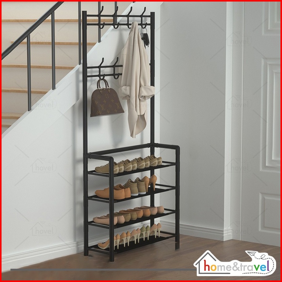 Hovelshop Rak Sepatu 4 5 Susun Standing Hanger Gantungan Topi Jaket 8 Kait Portable