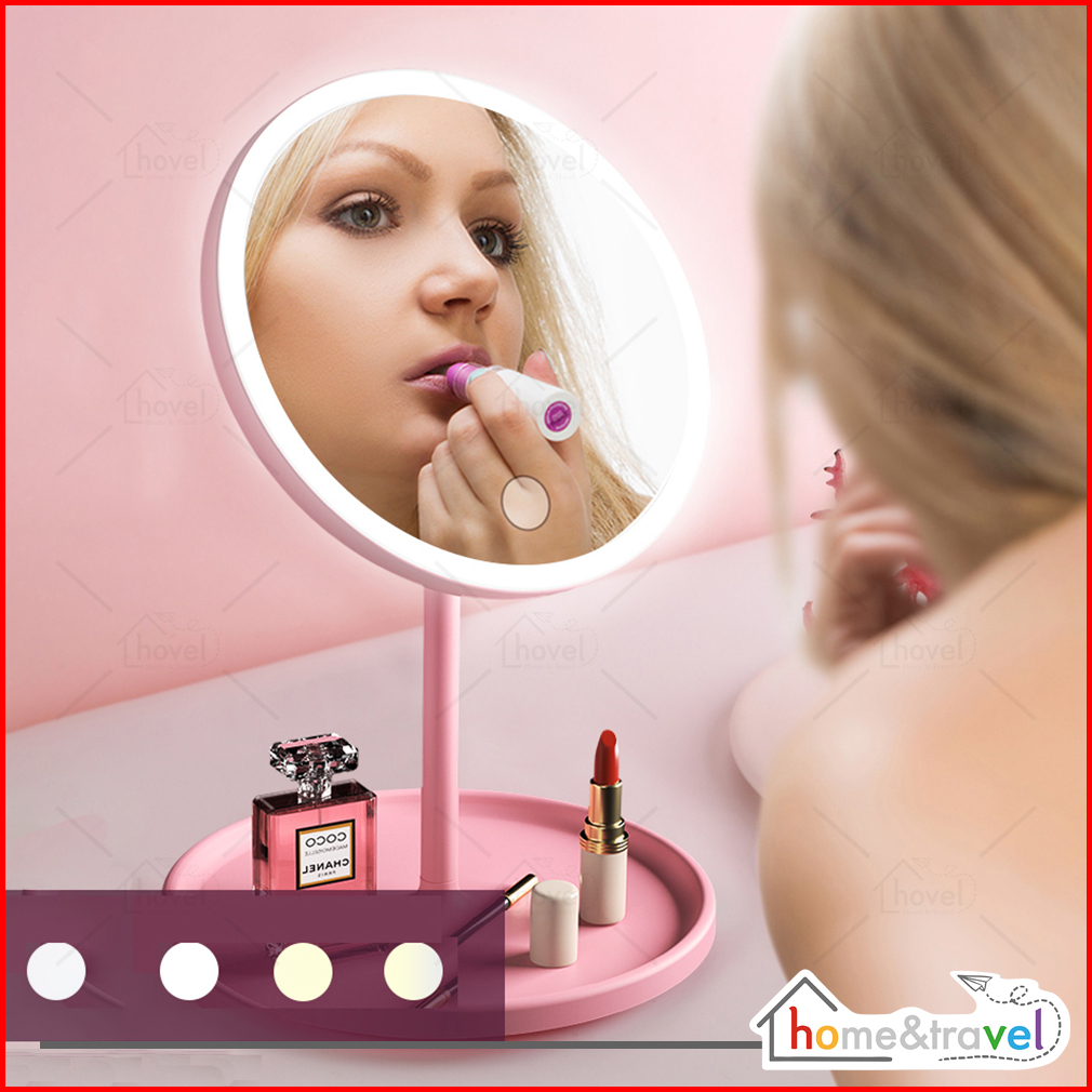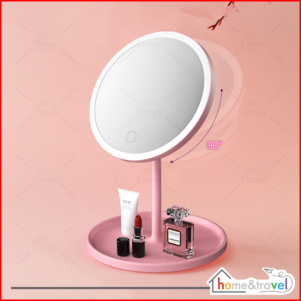 Hovelshop Desktop Led Cermin Rias Makeup Mirror Rotasi 90 Derajat Touchscreen Bulat Free Charge