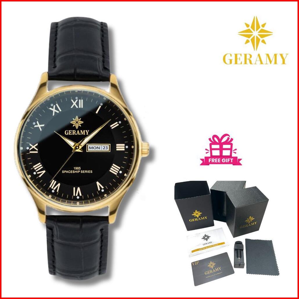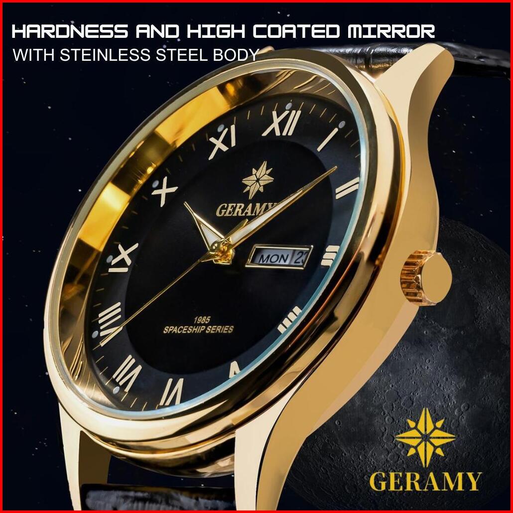 Geramy L015 Jam Tangan Pria Original Anti Air Stainless Steel Quartz Kalender Kulit Luminous