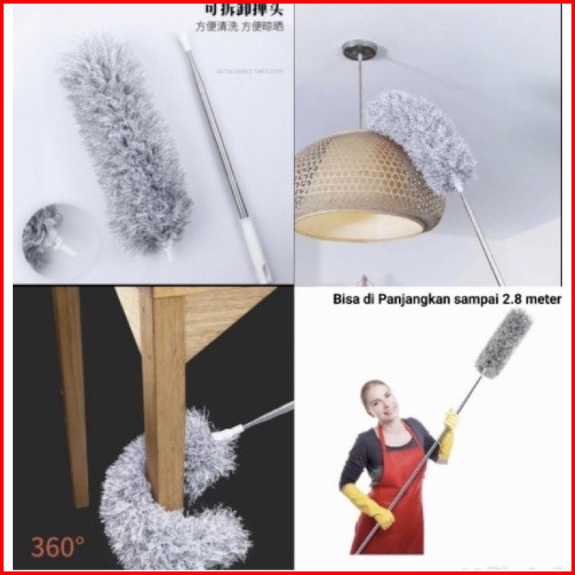 Kemoceng Teleskopik Telescopic 2.8 Meter Tarik Tekuk Flexibel Sapu Alat Pembersih Rumah Kemoceng Bulu Microfiber Gagang