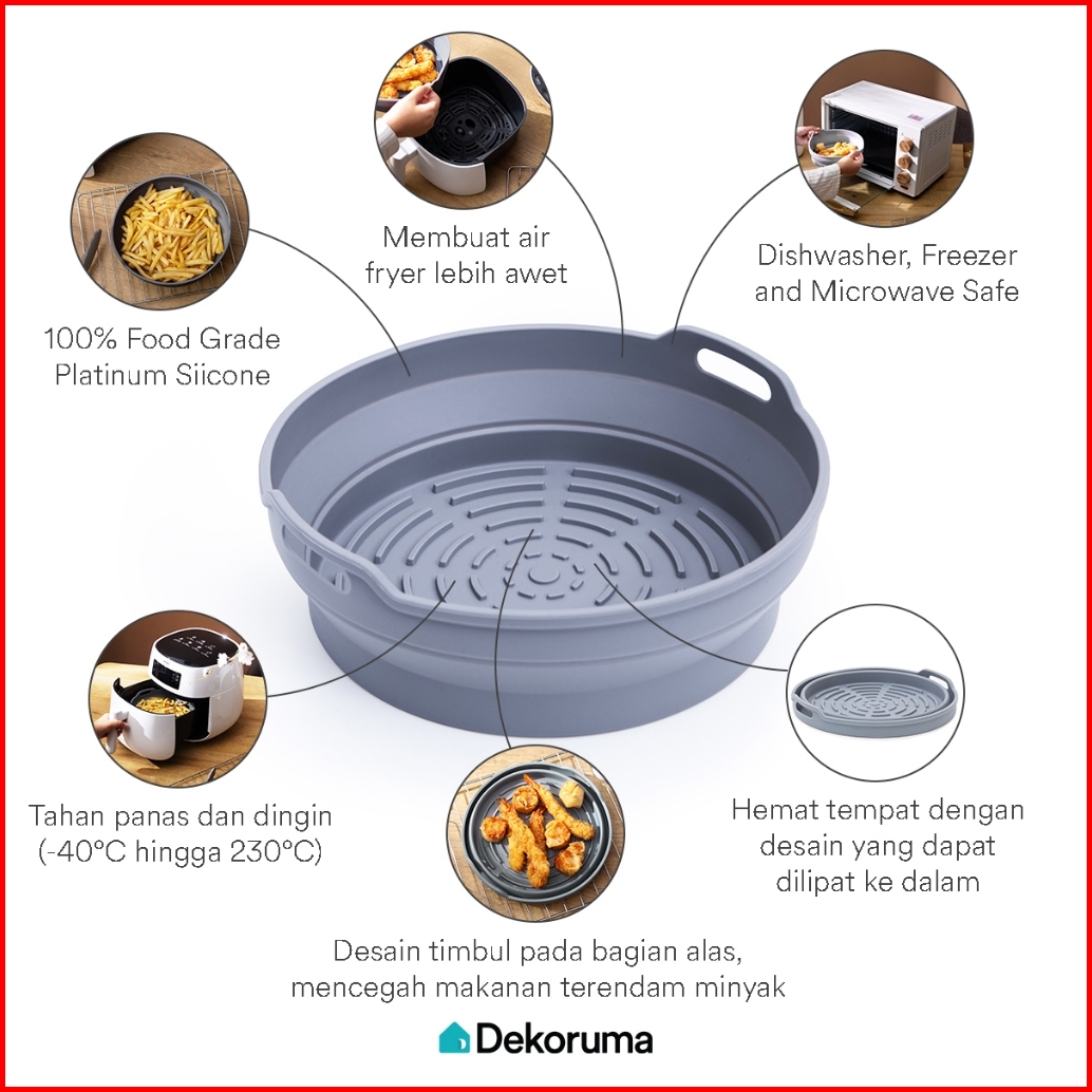 Dekoruma Sina Loyang Air Fryer Silikon Tahan Panas Bulat Diameter 20cm