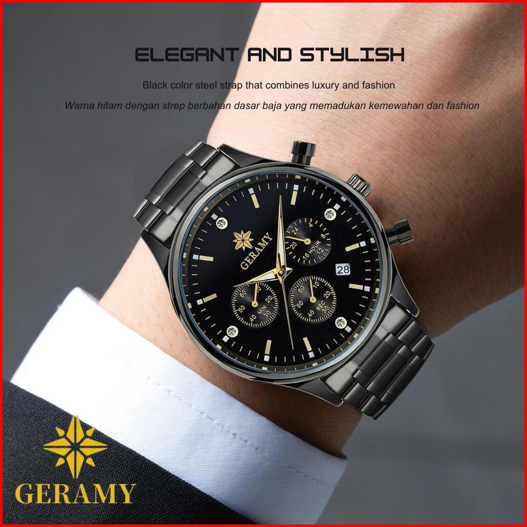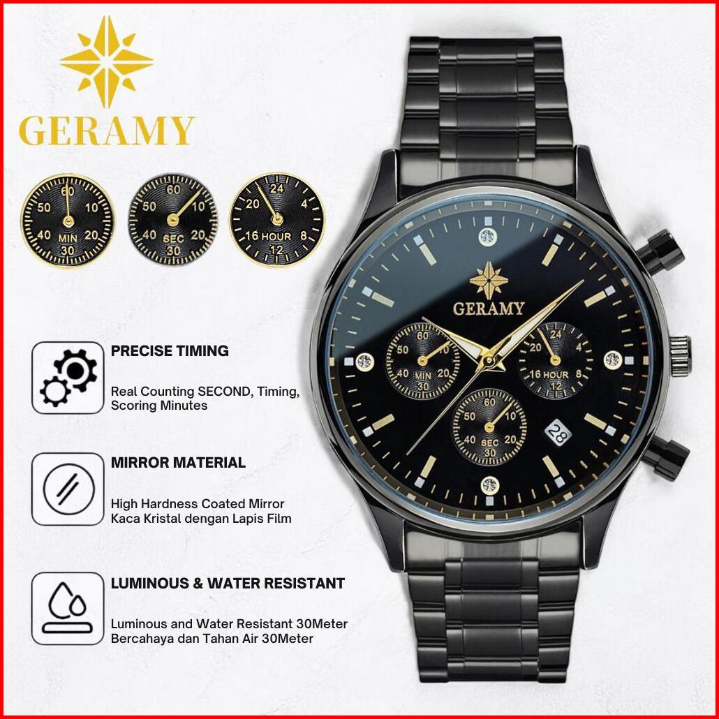 Geramy S002 Jam Tangan Pria Original Anti Air Stainless Steel Quartz Kalender Multi Fungsi Chronograph