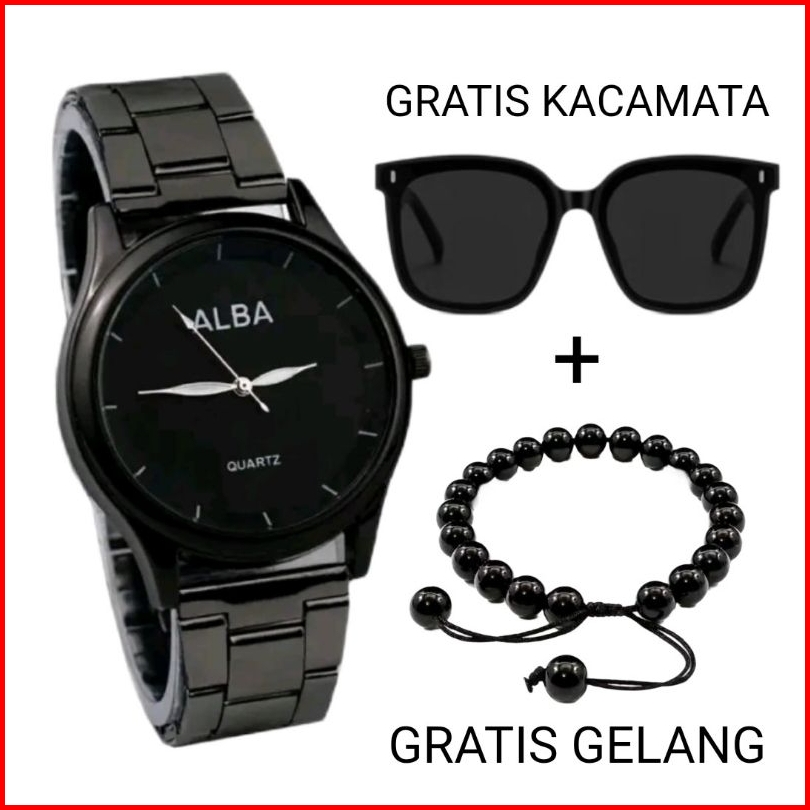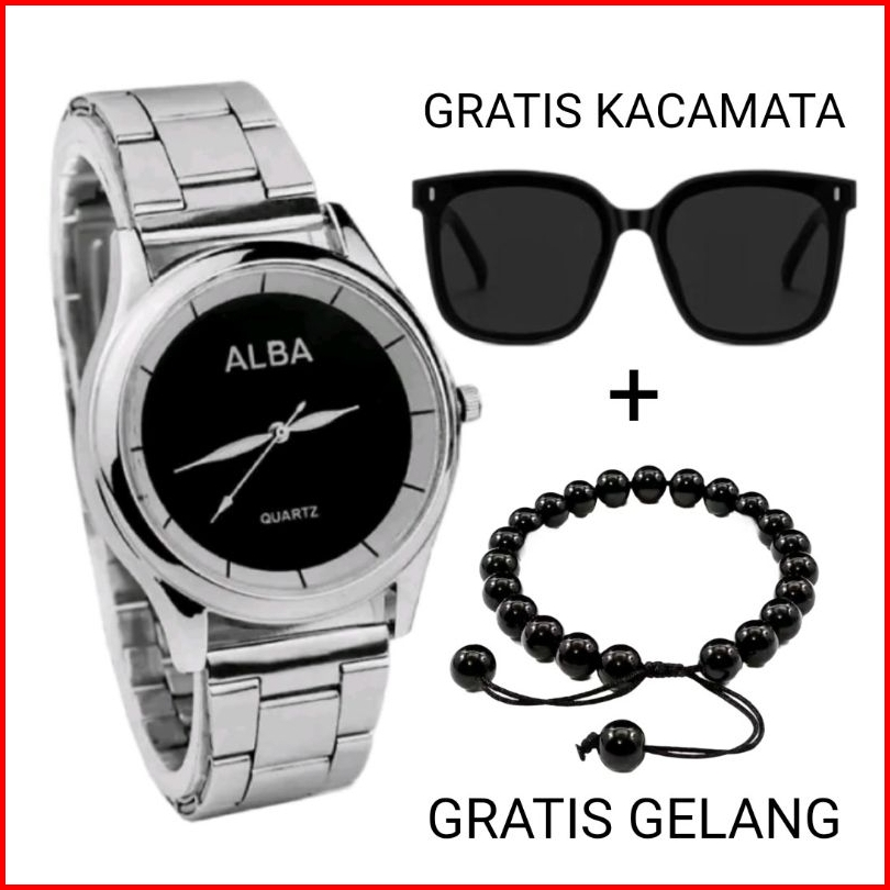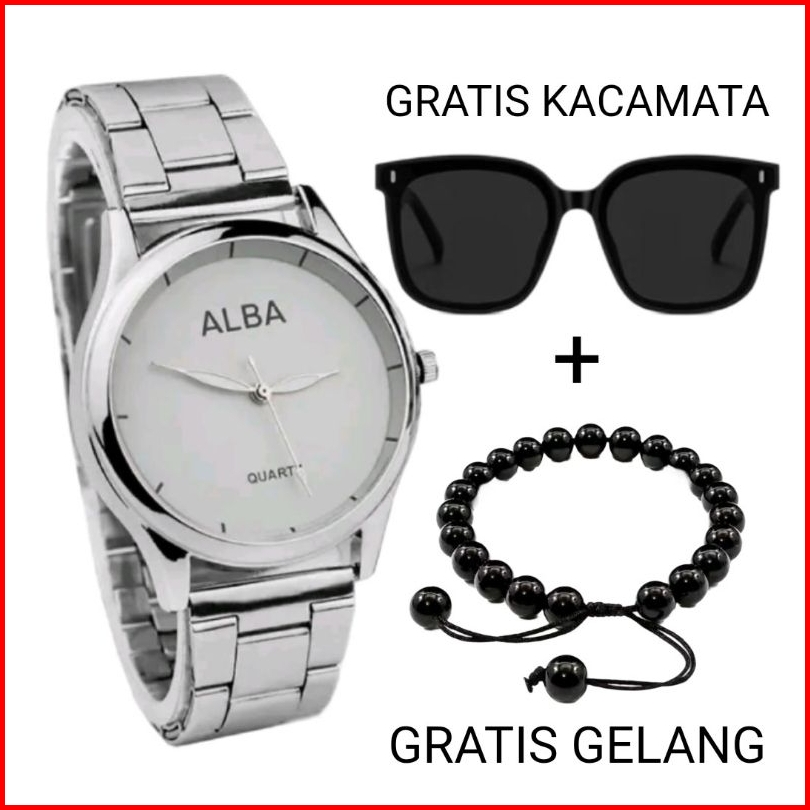Beli 1 Dapat 3... Jam Tangan Pria Alba Rantai Free Kacamata Gelang Keren Paket Super Hemat